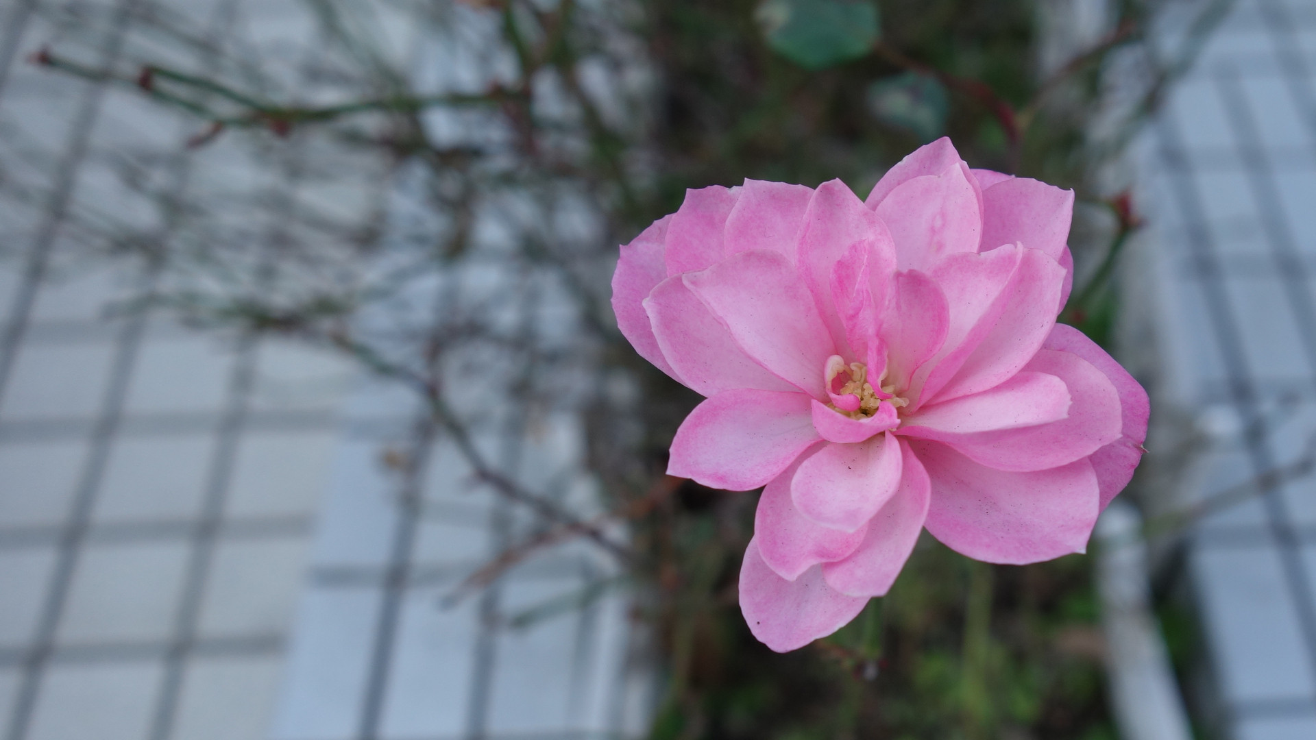 通り道にぽっと咲いていた花、最初に撮った写真です。16:9にトリミングのみしています。