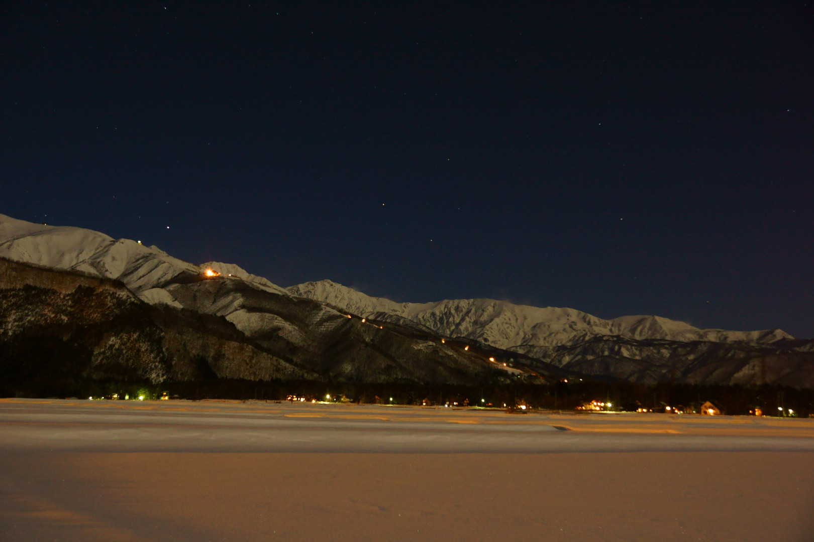 夜の八方根スキー場から白馬山麓を撮りました。