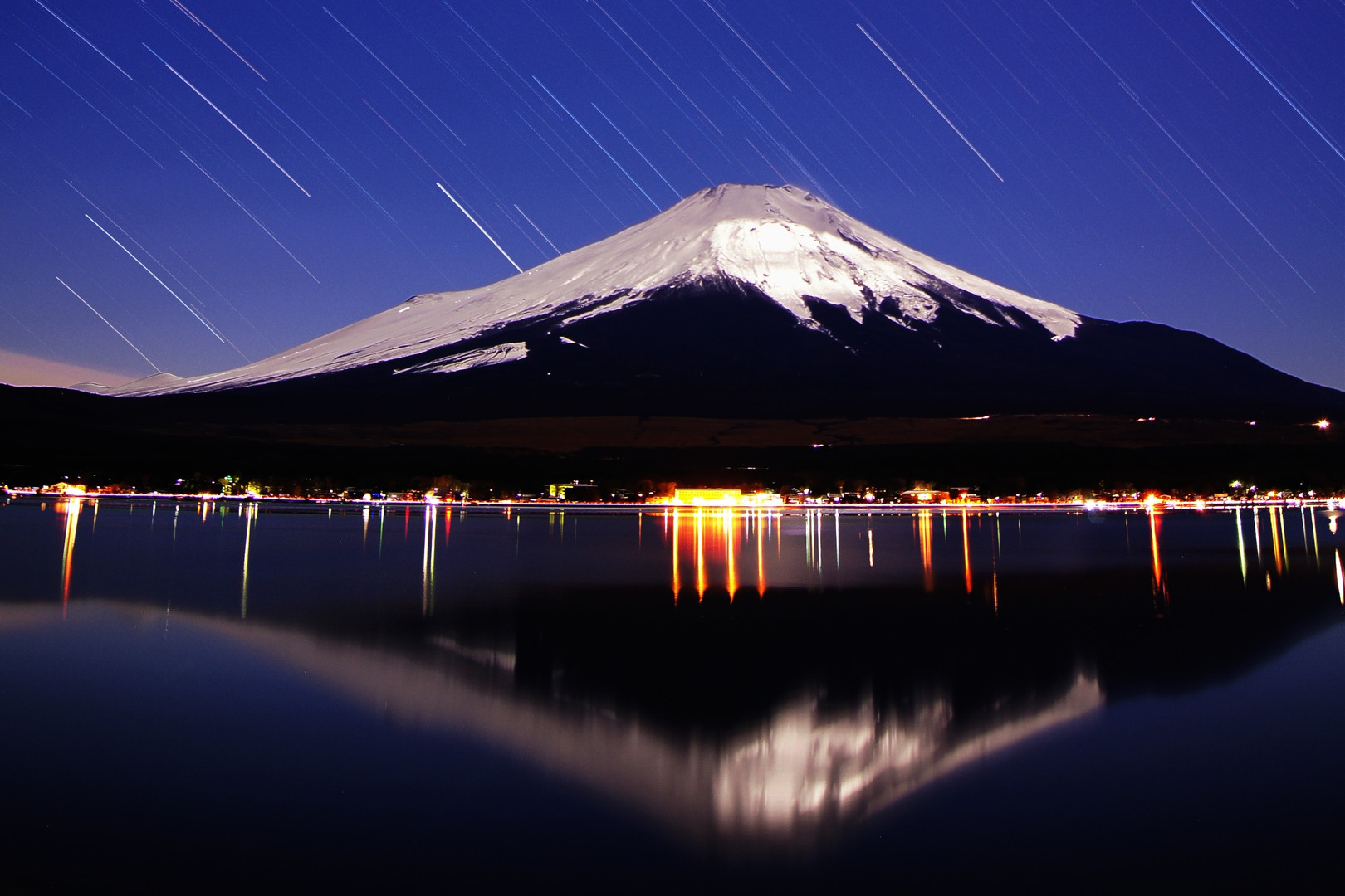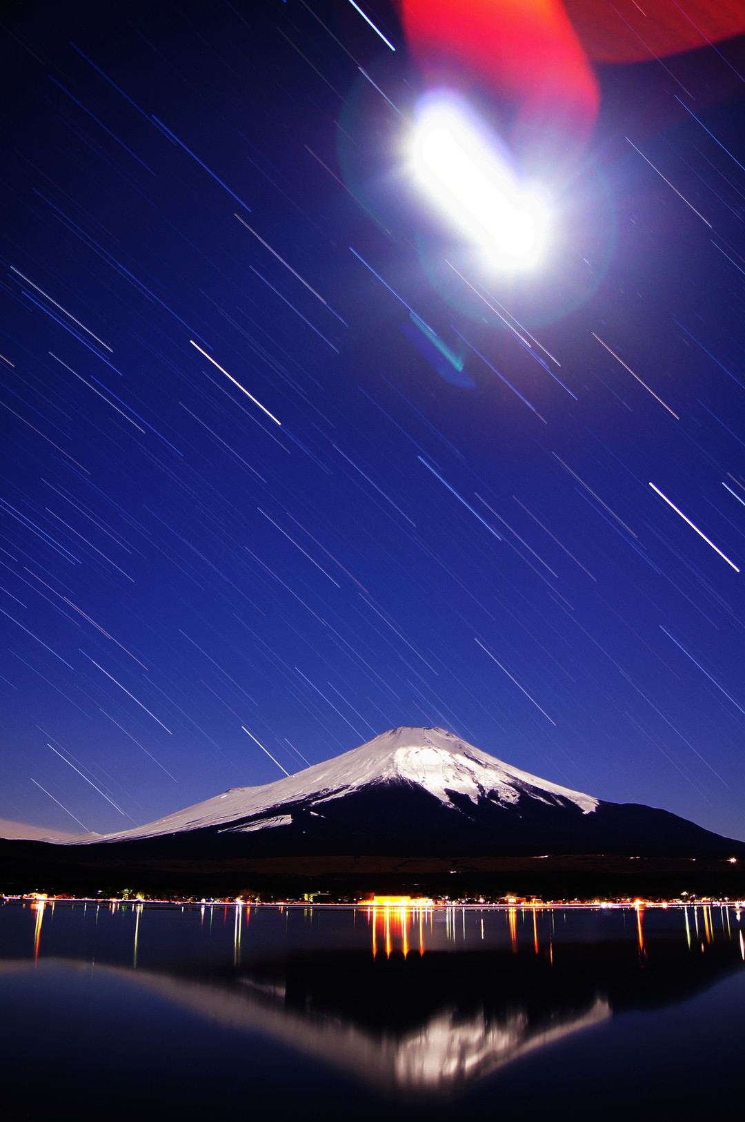 いつものように山中湖畔から今日のAM5:00くらいから撮影してます。 30秒×59回のコンポジットです。 月も入れてみましたが、フレアが出まくってます。 見苦しいので、2枚目には月をトリミングでカットしたものを載せています。