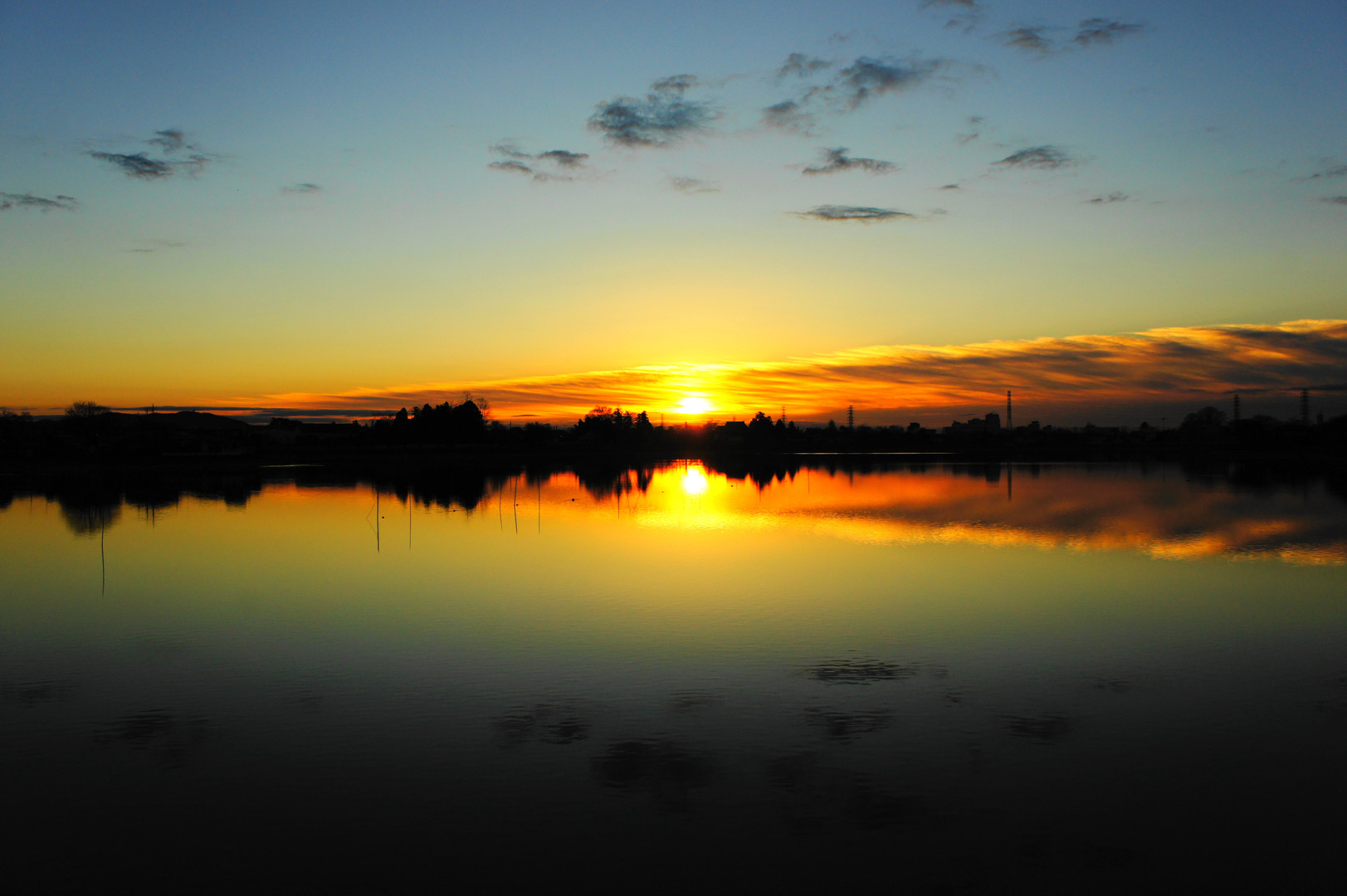 日の出時間予告16分遅れ 7:08 雲が多くやっと昇りました。 by砂沼大橋