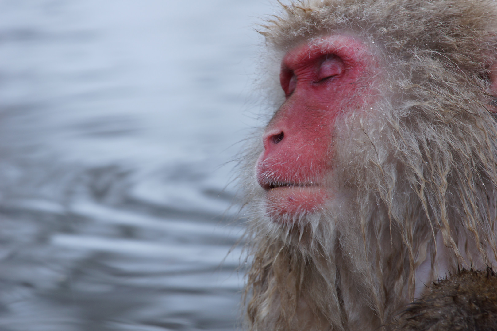 地獄谷野猿公苑の一コマです。 ゆっくり温泉に入って気持ち良さそうですね。 この写真を撮る為に、かなり待ちました(笑)