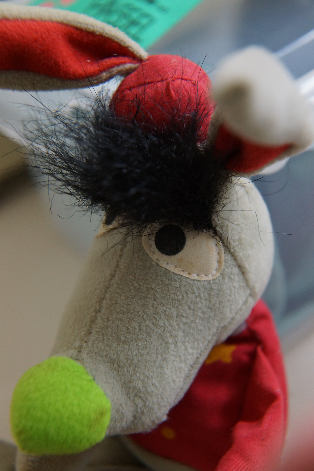 ニコンの眼鏡矯正用非球面プラスチックレンズ 屈折率1.56 +3.75D 70mm径 これをカメラ・レンズの前面へ被せると クローズアップレンズを取り付けたのと ほぼ同じ効果が出ます。 セサミストリートのキャラクター「ベニーラビット」 そのつぶらな瞳にピントを合わせました。