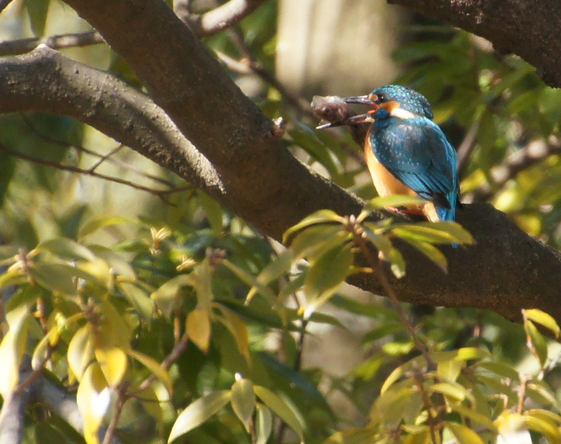 近所の公園にて。 小春日和のせいかアクティブなカワセミでした。