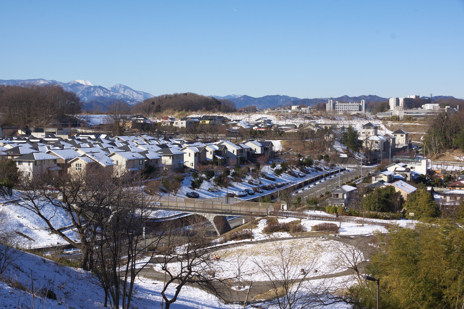 公園から富士山をバックにした多摩美大や家々の雪景色を望むことが出来ました。