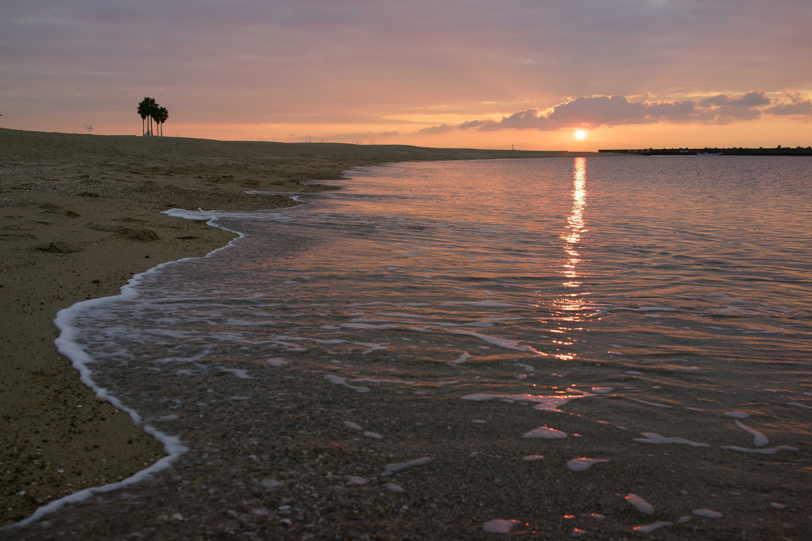 誰もいない、須磨海岸の夜明けです。