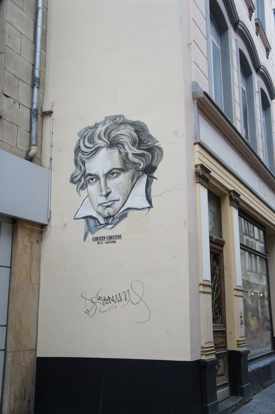 ボンと言えばビ~トホ~フェン(ベートーヴェン)の産まれた場所。 ってことで、描かれていました。なんかちょっと違うけど。。