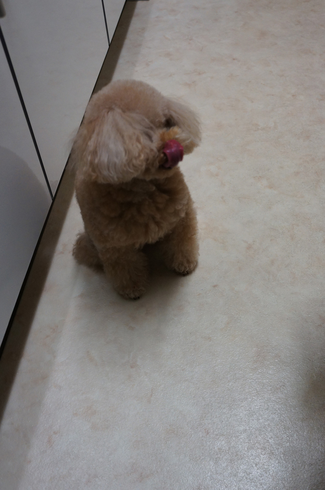 今日が4回目の誕生日のショコラさん。 特別(?)なおやつを前に、思わずペロッ!でした^^ ※今日の作品はトリミングしています。