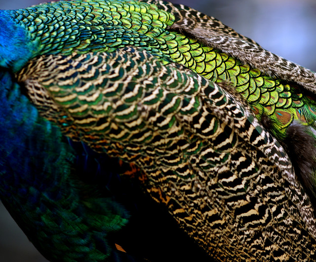 孔雀は目の覚めるような美しさを有する鳥です。 写真で何処までその美しさに迫れるか・・・チャレンジしました。 実物には及びませんがその一端をお目にかけましょう。
