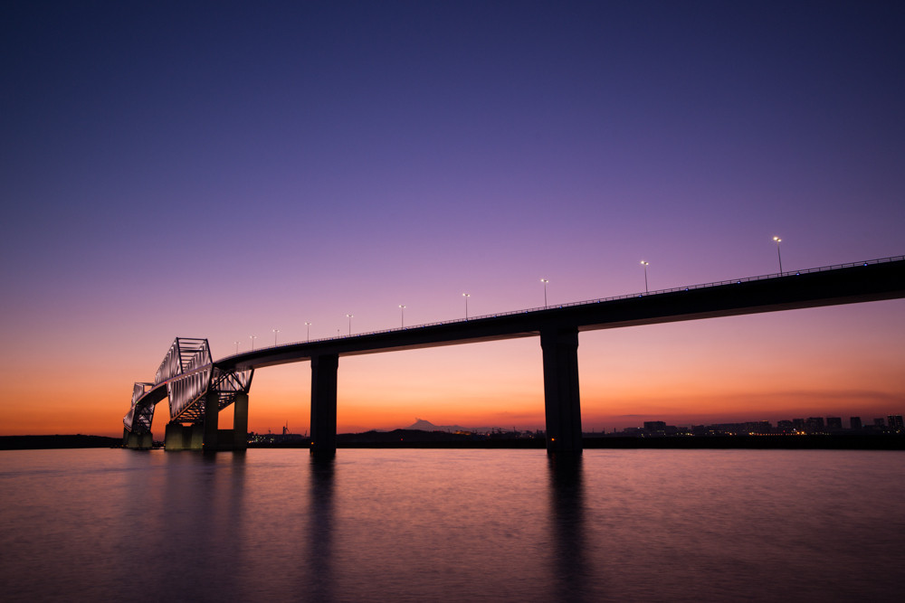 東京ゲートブリッジの向こう側に夕景が広がりました。 ハーフNDフィルターを使ってます。 このわずかな時間を撮る楽しさが風景写真の醍醐味です。 ■東京ゲートブリッジ 落暉とライトアップ http://www.museoalpha.me/tokyo/2578/