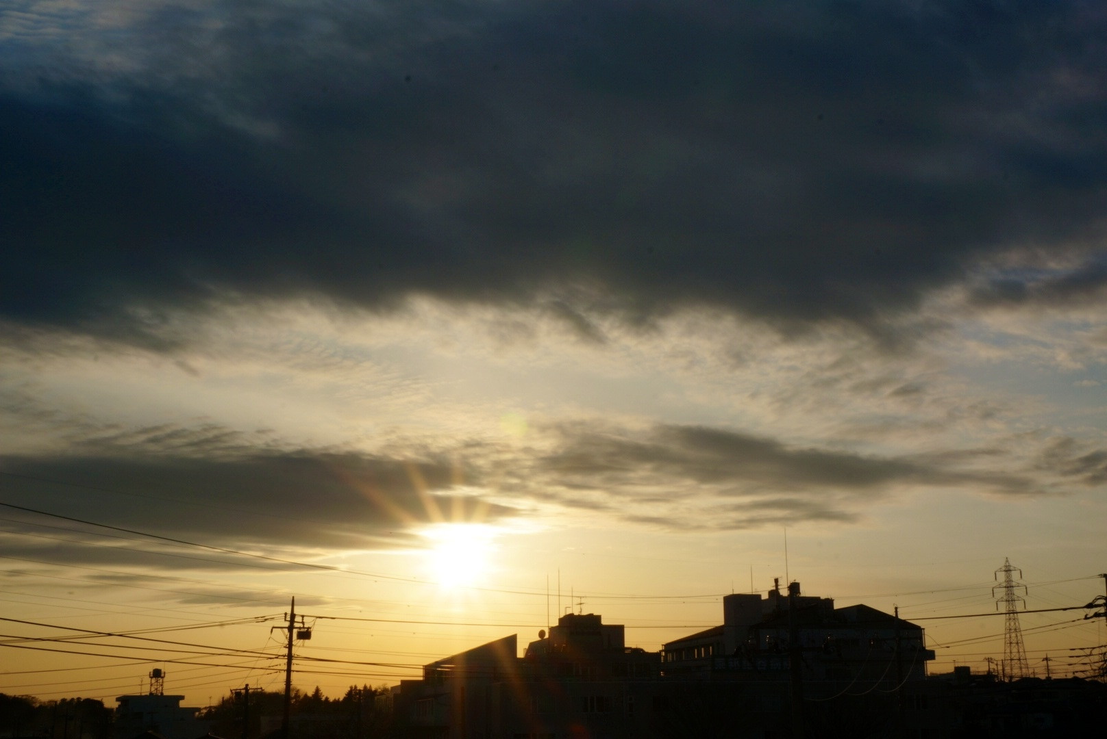 良いお天気でしたが、雲が多かったです。 明日は雨の予報。 グレーの雲と夕焼け空が良い雰囲気。