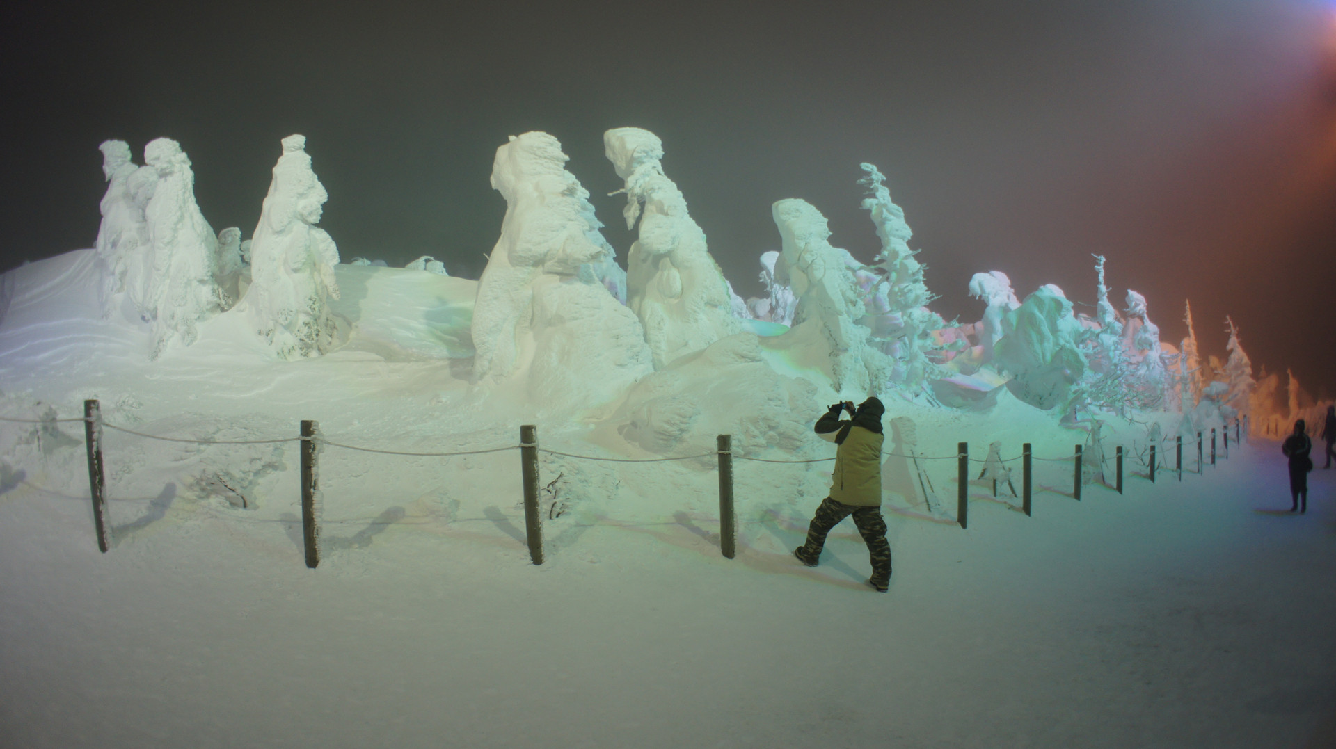 ライトアップされた樹氷を鑑賞してきました。 自然が作り上げた見事な彫刻です。 昼と違い、樹氷が人の姿に見えて、おとぎ話の世界へ飛び込んだ感じでした。 とても感動しました。