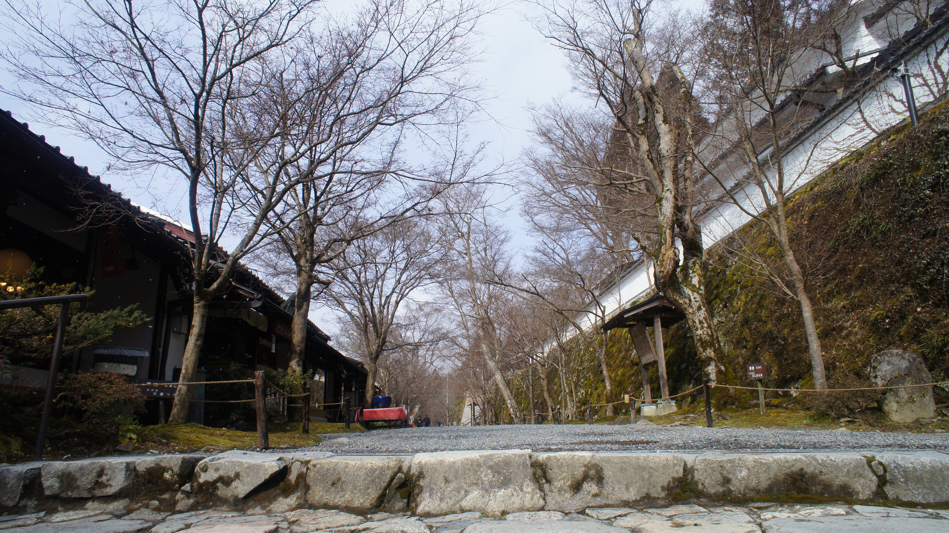 三千院正門までもう少し。雪雲が通り過ぎたのか、辺りが少し明るくなってきました。