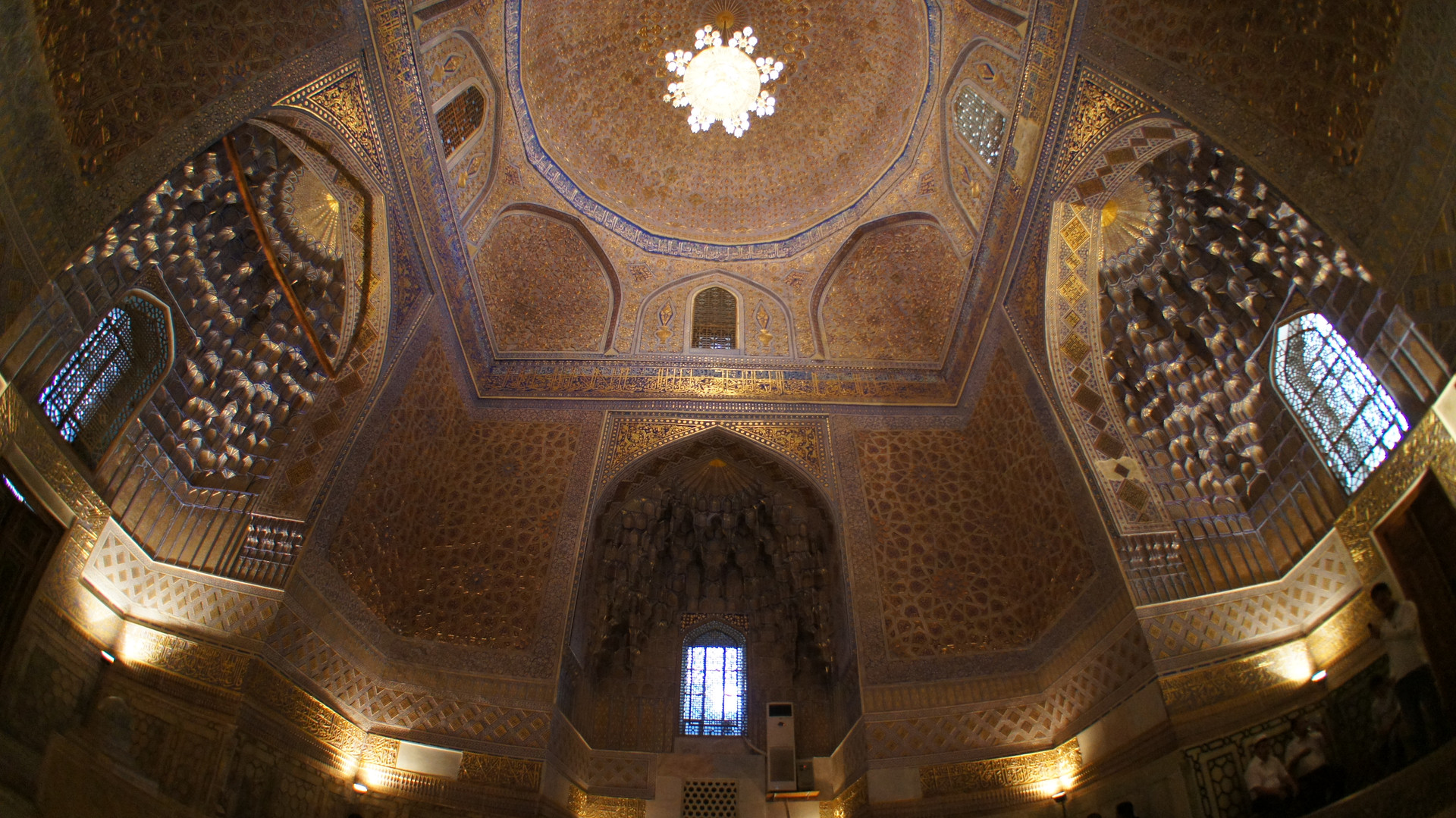 ティムール大王霊廟内部です。黄金の壁面に刻まれたイスラム神聖色である青のラインがアクセントなり、荘厳でした。
