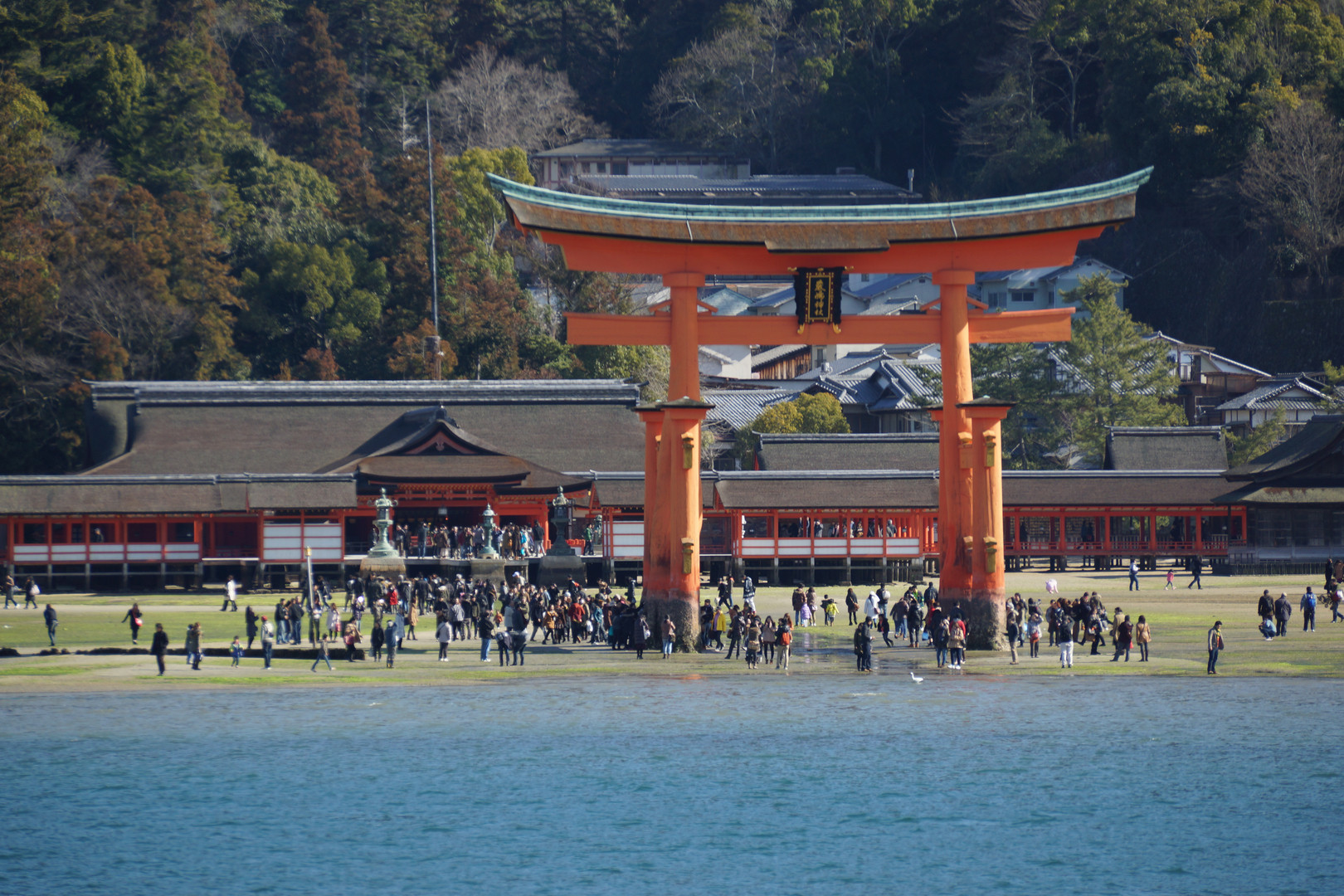 久ぶりに宮島へ。。。 ちょうど引き潮の時間と重なり鳥居の全体を撮影してみました。