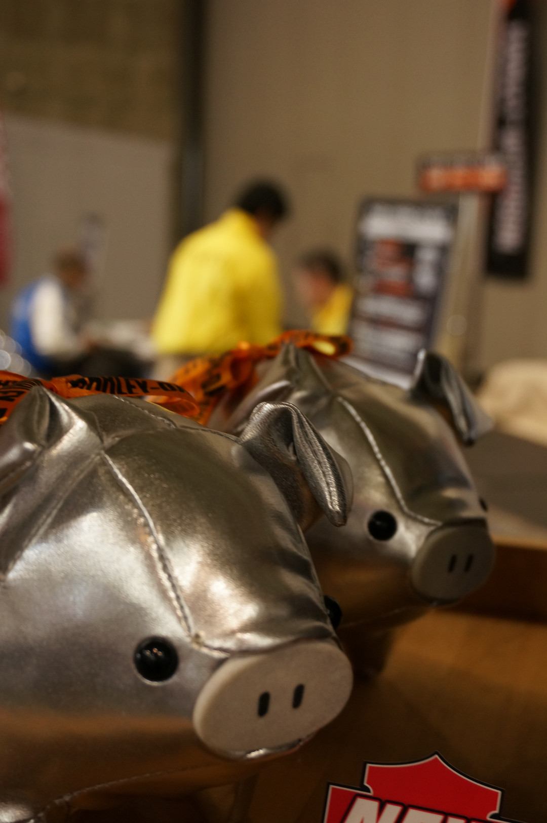 写真はアパレルなどの販売所においてあったH.O.G( Harley davidson Owners Group)のマスコット、ブタちゃんです。