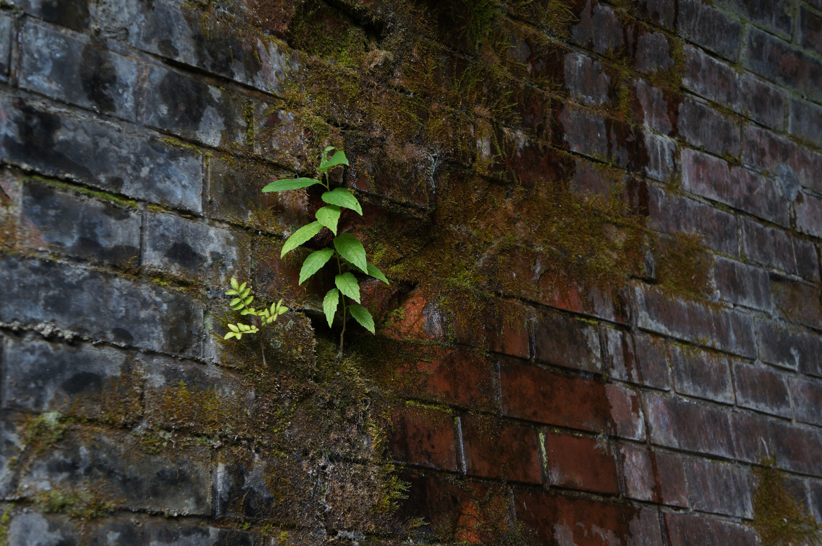 めがね橋の上の廃線で、トンネルの出口近くにレンガの隙間から生えている木の子供?がいたので、たくましいなぁと思って撮りました。 光と水と根を伸ばせる隙間があれば彼らは生きようとがんばれます。つよいっすね