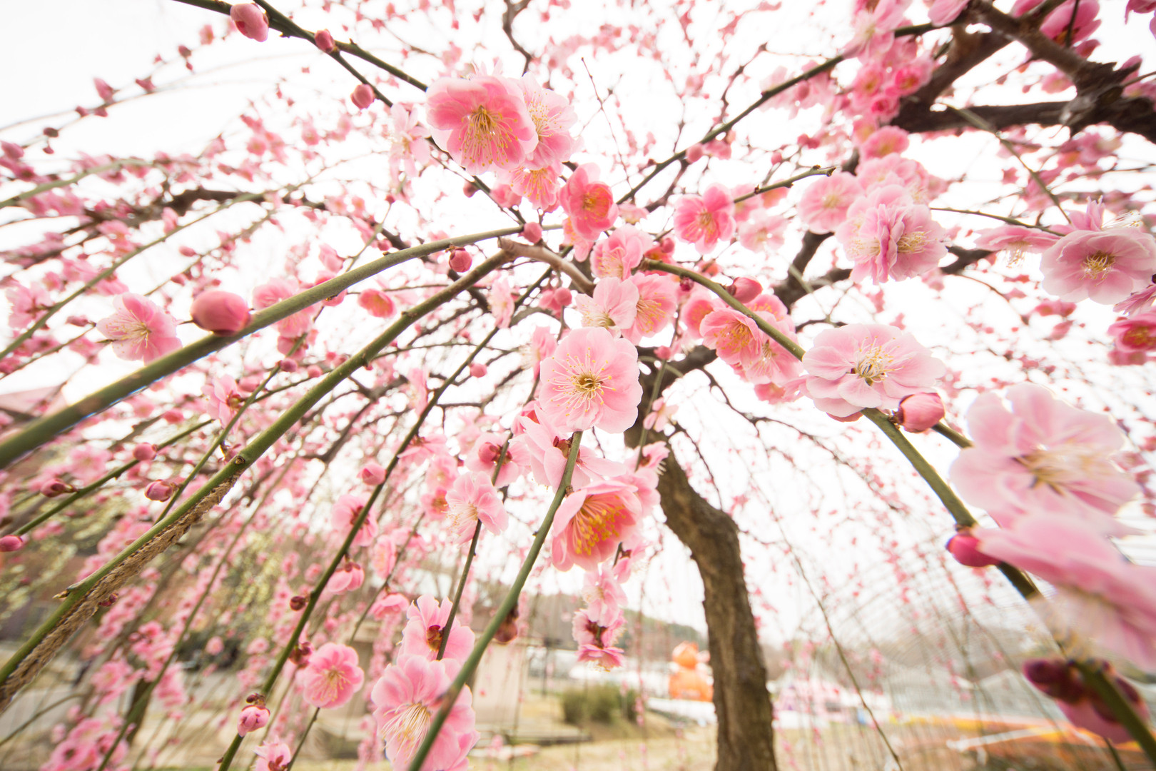 しだれ梅を下からあおる様に撮影