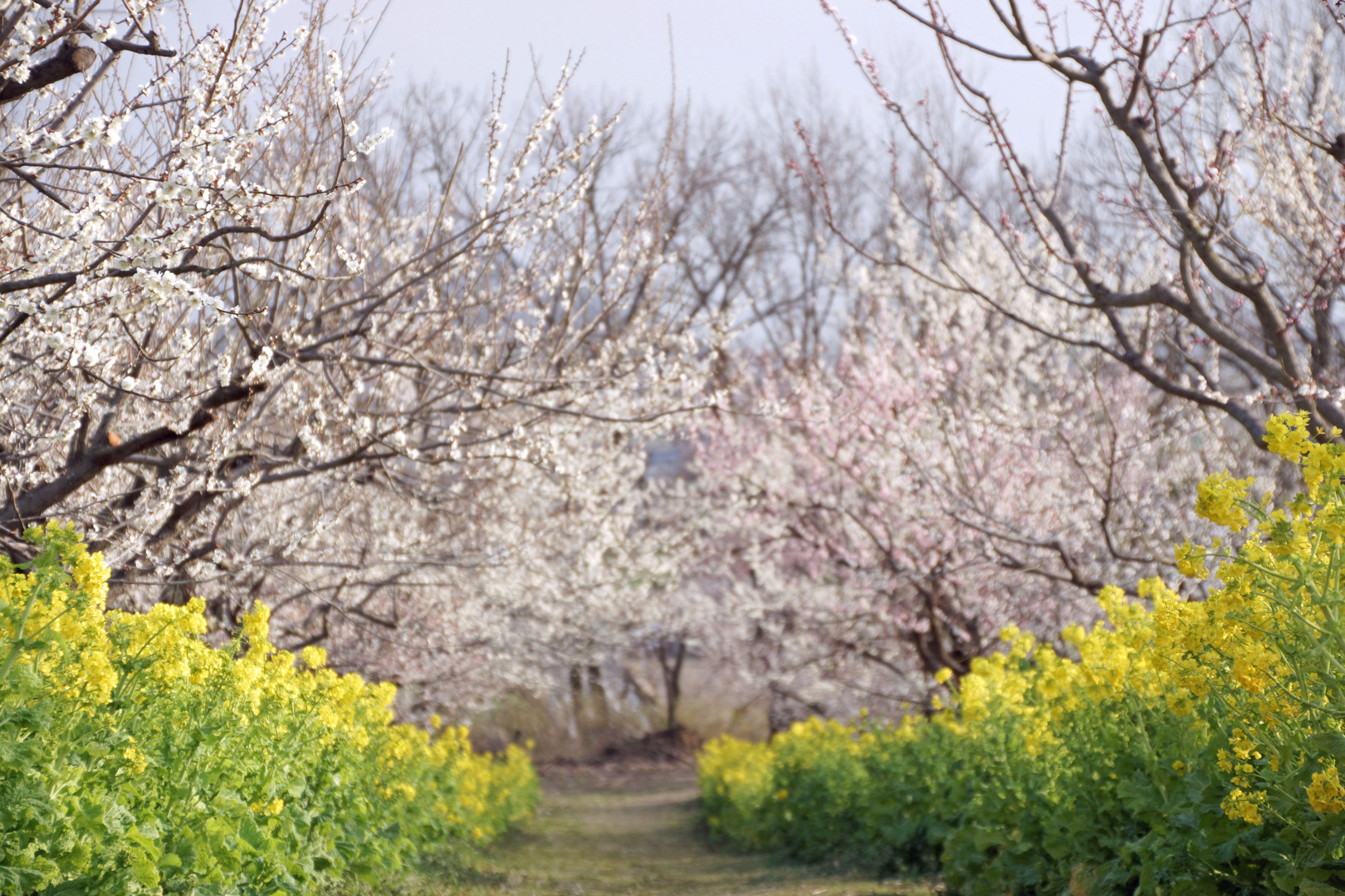 菜の花、梅林のなかの小道を見つけました。