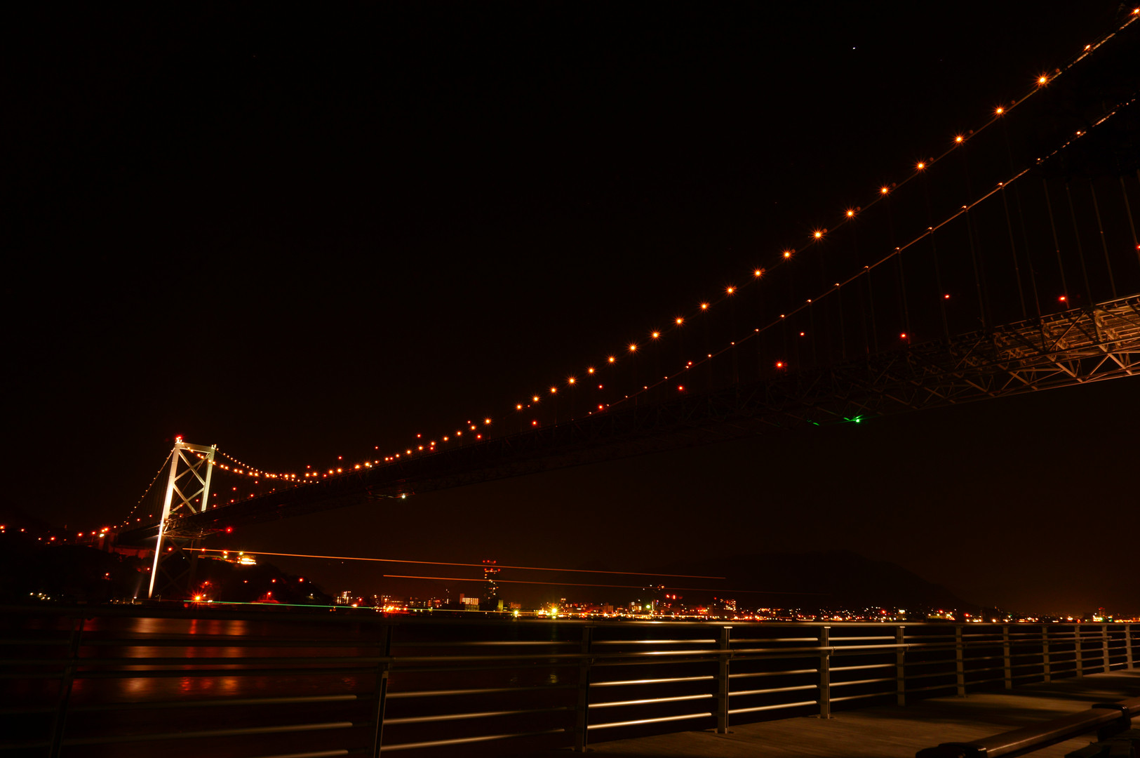 以前から関門橋の夜景を撮影したい、と思っておりましたが、 重い腰を上げ、ようやく撮影いたしました。 昼間は暑かったのに夜は肌寒かった...。