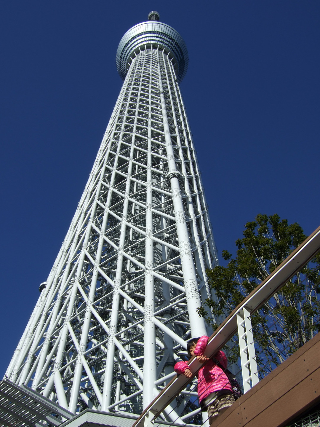 なんとかして、娘を入れてスカイツリーのてっぺんまで写そうと思いました。 一眼レフ買う前の写真ですけど・・・