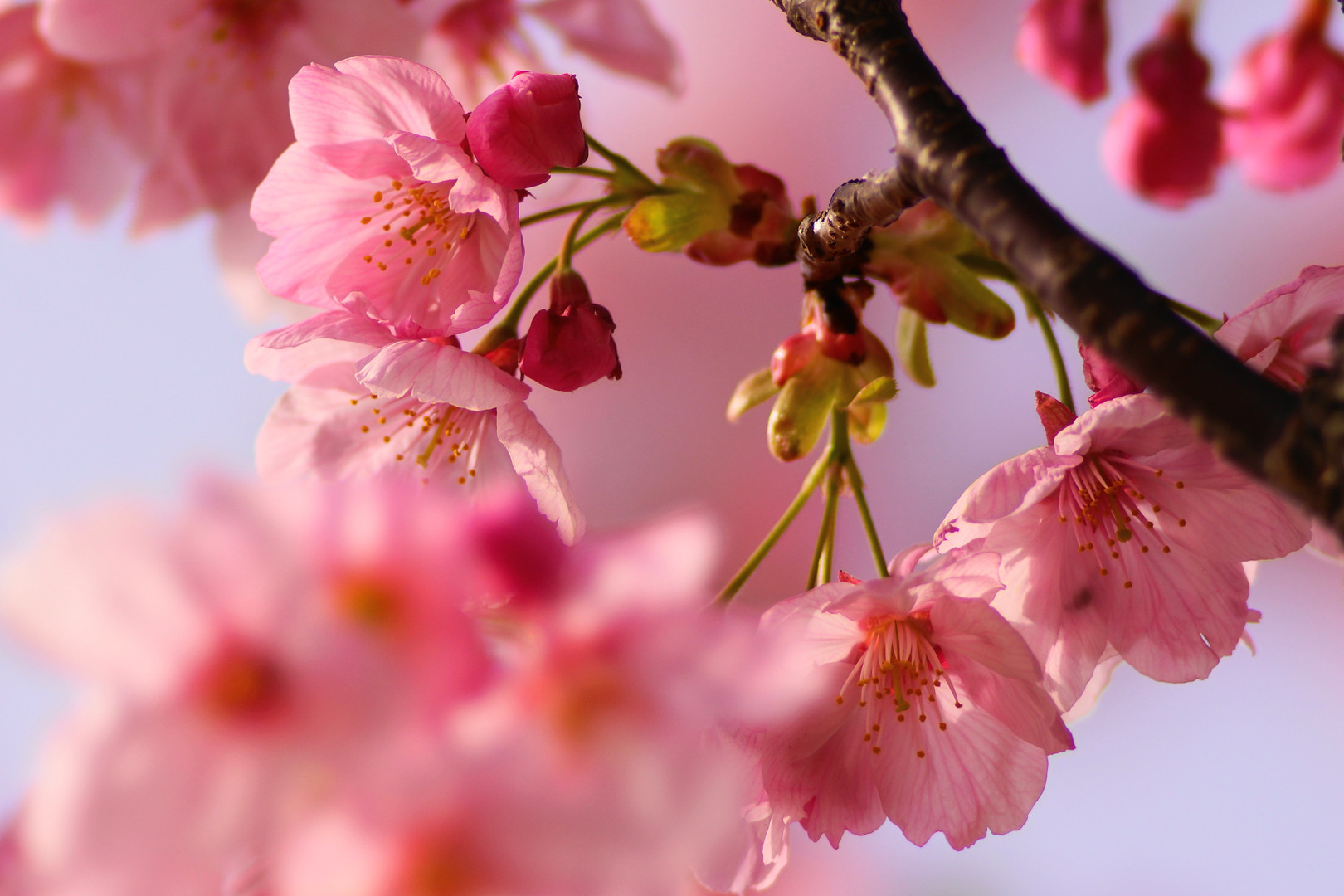 北九州市勝山公園にて。河津桜がいいころ合いのがありました。 めじろも飛んできましたよ。 色が鮮やかですね。