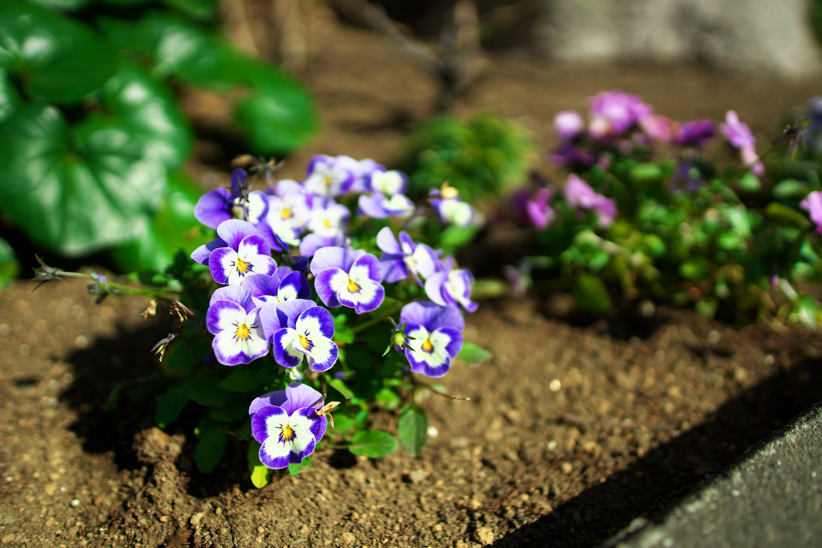 枝垂桜を撮影中にレンズ交換をする為、座った横に 花壇があり、日光に向けて一生懸命咲いておりました。 健気さに一枚^^