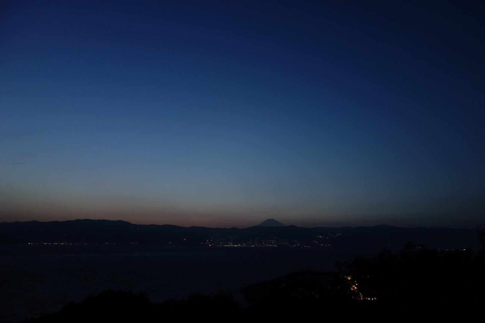 初島から熱海を望み富士山を