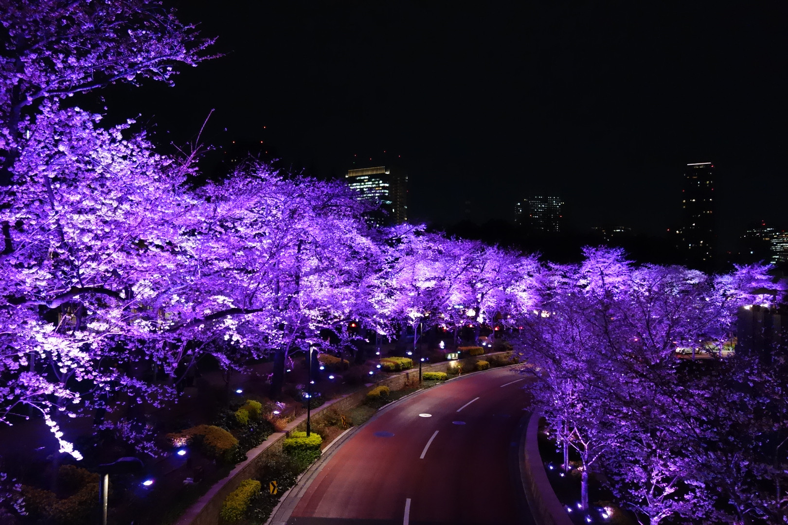 東京ミッドタウンの桜並木の夜景です。歩道橋から撮りました。
