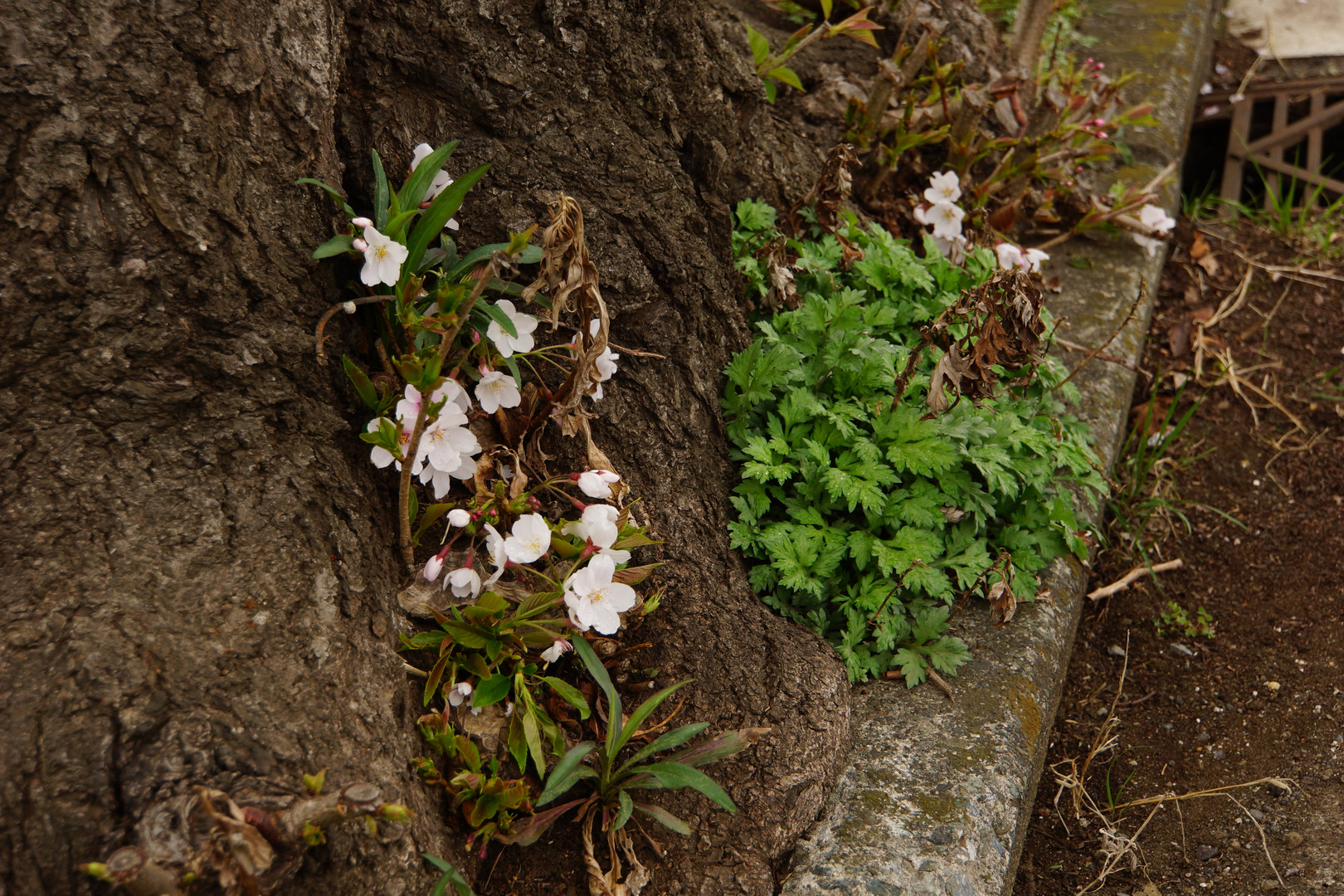 横浜市瀬谷区の 海軍道路 桜並木も以前に比べると寂しくなりました 害虫でなのか公害でなのか分かりませんが かなり間引きされています その中で 健気にも…生命力ですネ