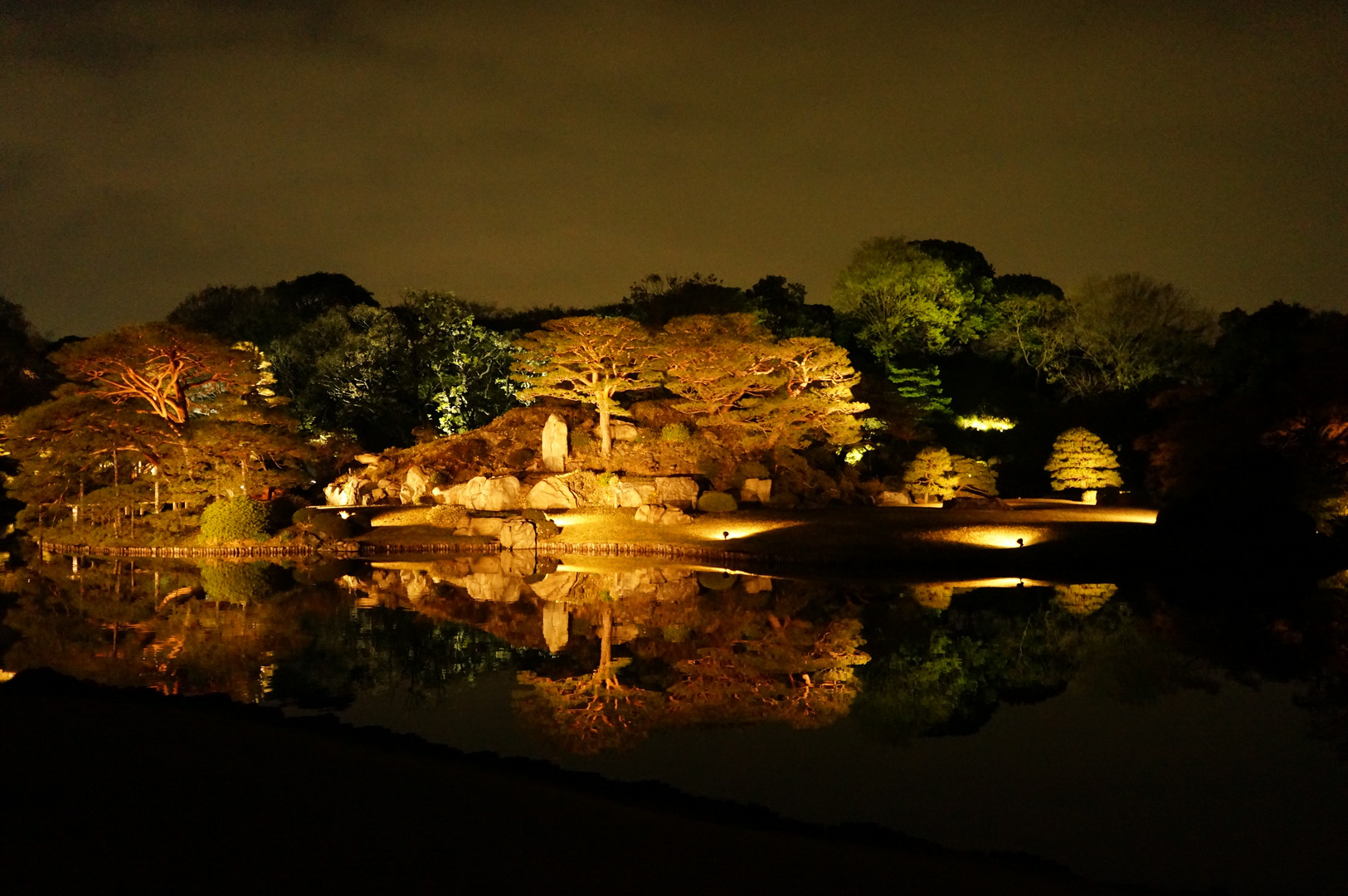 しだれ桜を撮影後、園内を散策していたところ、この風景に遭遇しました。 水面がおだやかで、まるで鏡のような反射が綺麗でした。
