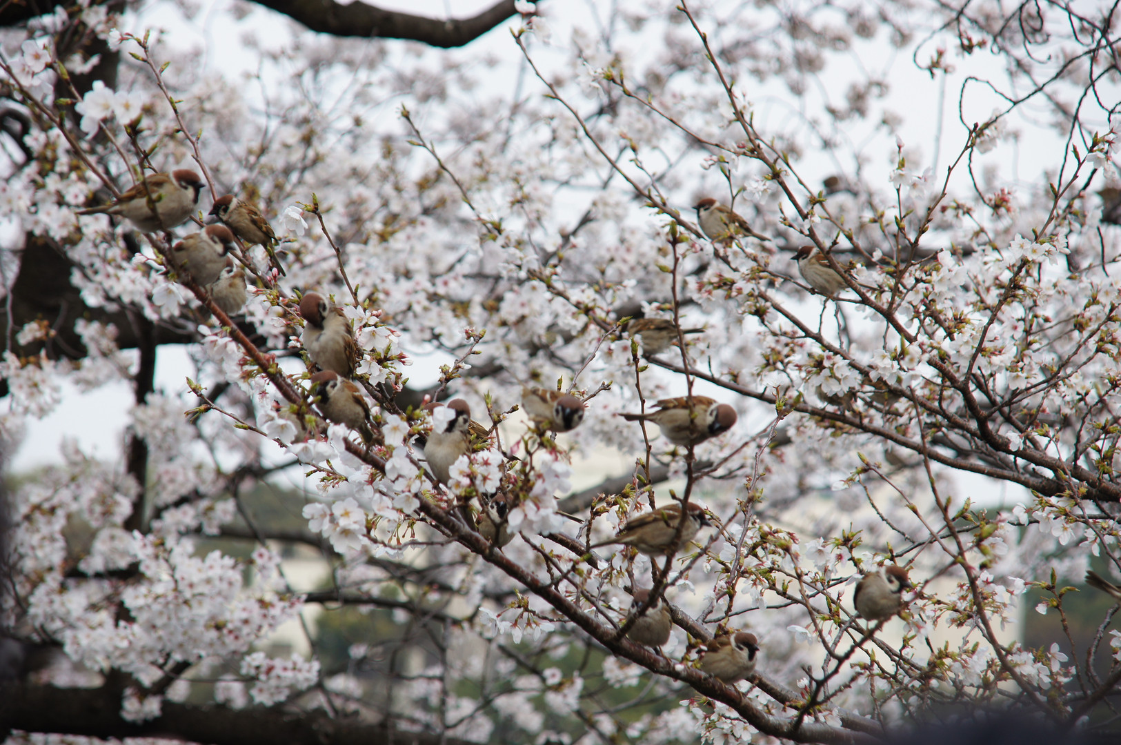 さすが上野のさくら スズメにも大人気です!