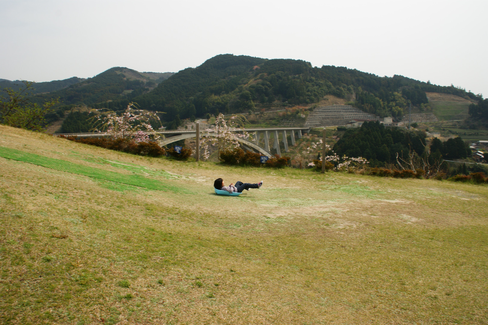 わらびの里での草スキー楽しむ。
