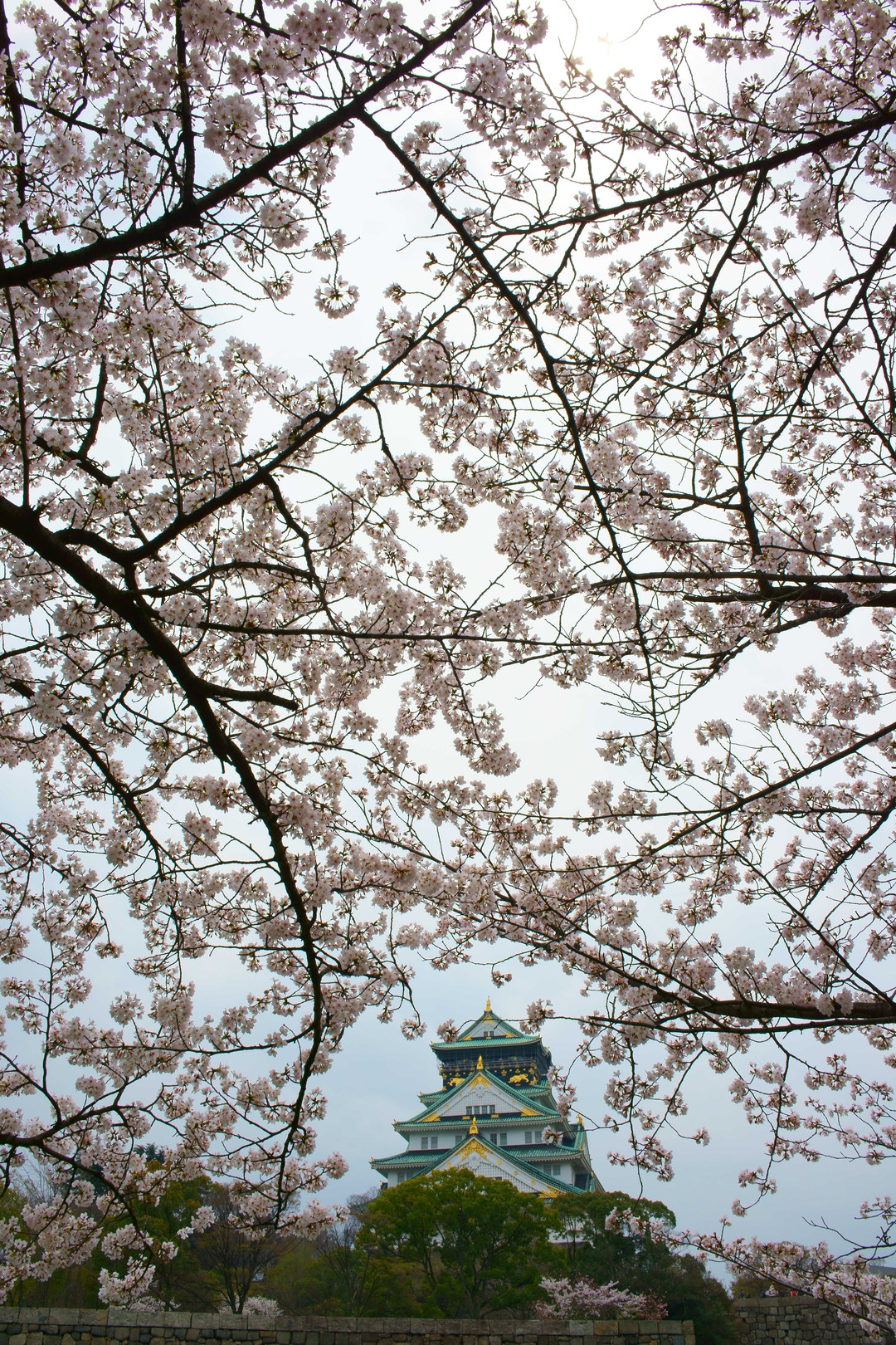 大阪城公園の桜です。 満開の桜のすき間に大阪城を主役で構図を決めました。