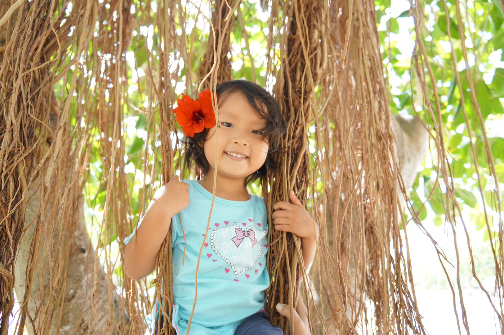 ベンガルボダイジュの木根のブランコで遊ぶ昼下がり