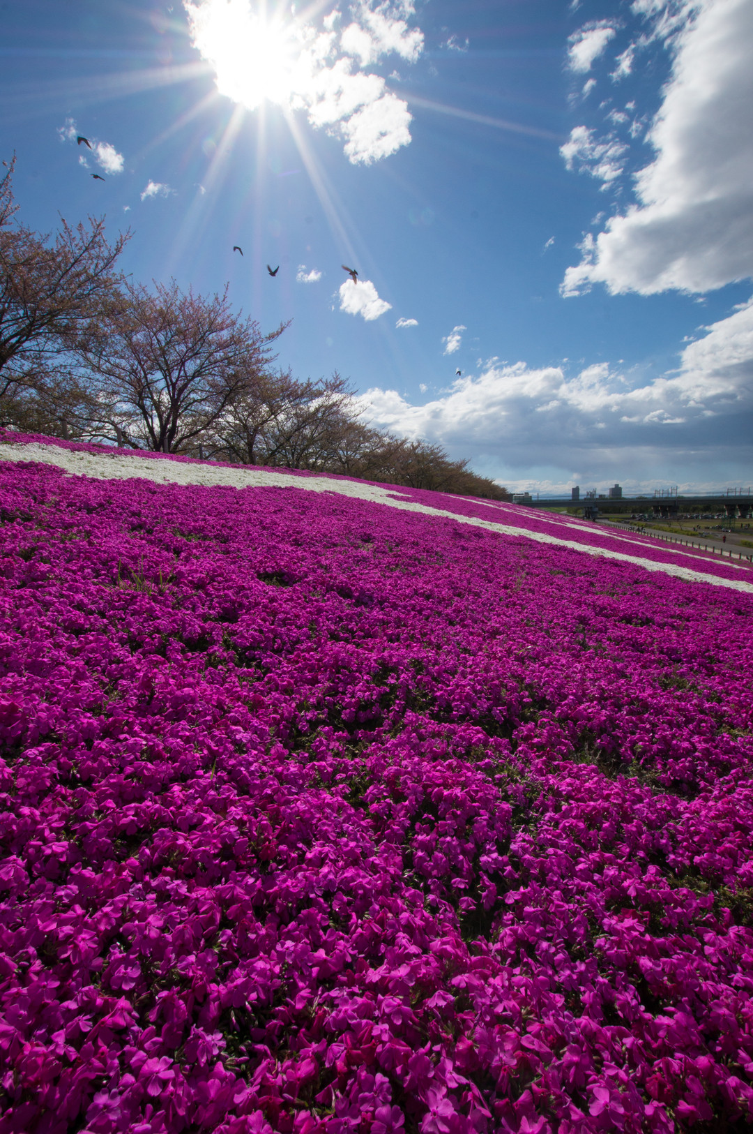 土手に咲く芝桜 自由に輝く空へと 羽ばたく鳥たち 春が動き出す
