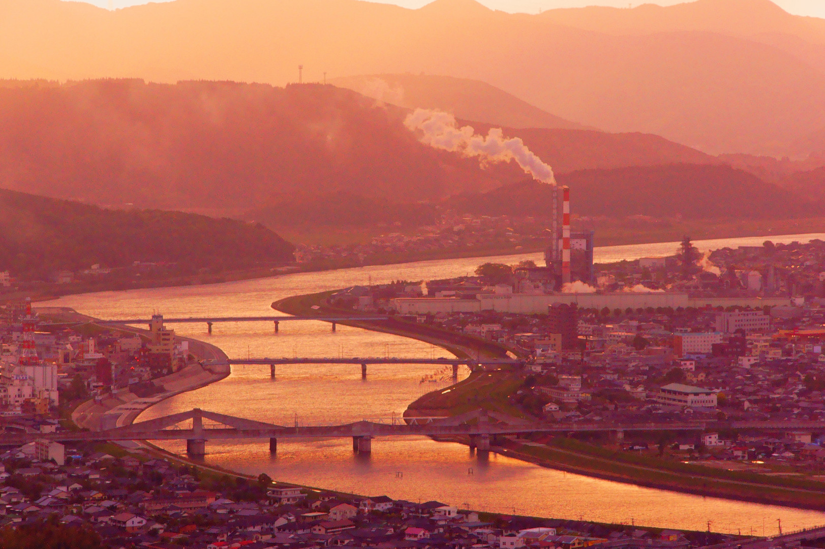 曇り空から晴れ間がのぞき街がオレンジに染まりました。曇り空だったので晴れていたらもっと理想の色が出たかも…。