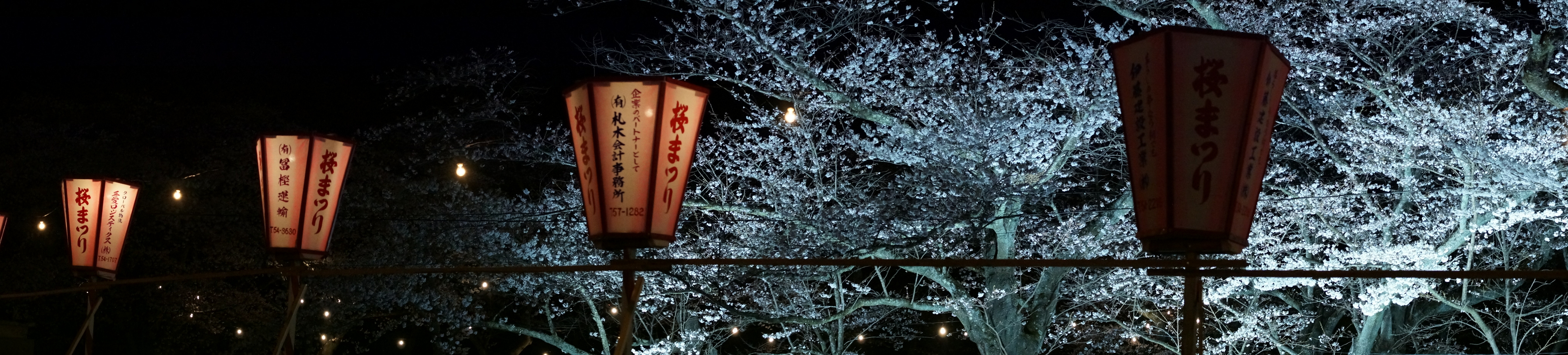 ライトに負けて桜の色が出せないので、スイングアウトパノラマで、こうやって角度を付けても撮れるのに驚いた。
