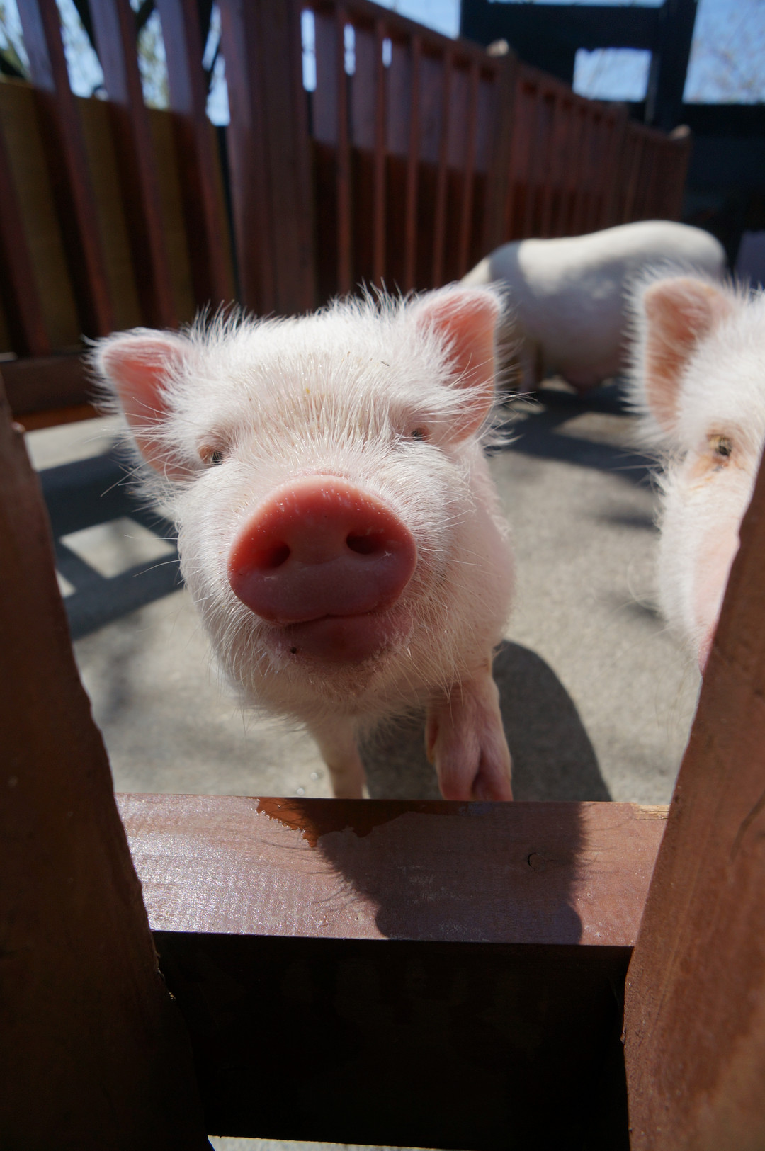 群馬県赤城山にいた子供のミニブタ。カメラに興味があるみたいです。 ワイドコンバータ使用