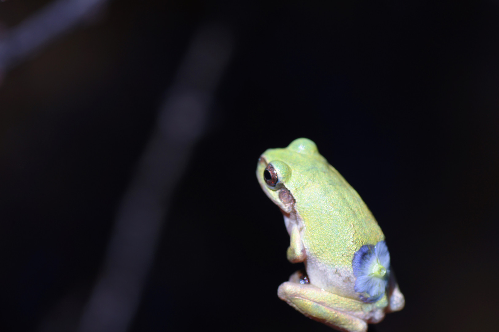 アマガエルのおしりに花びらが・・・
