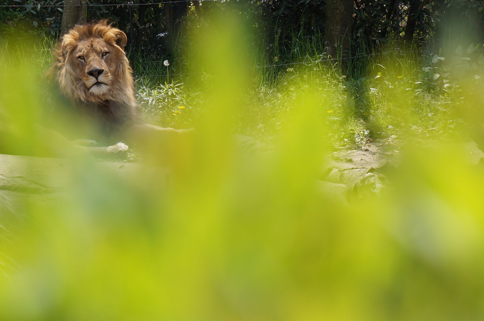 草の陰から見つからないようにライオンを覗き見... バッチリ見つかっています★