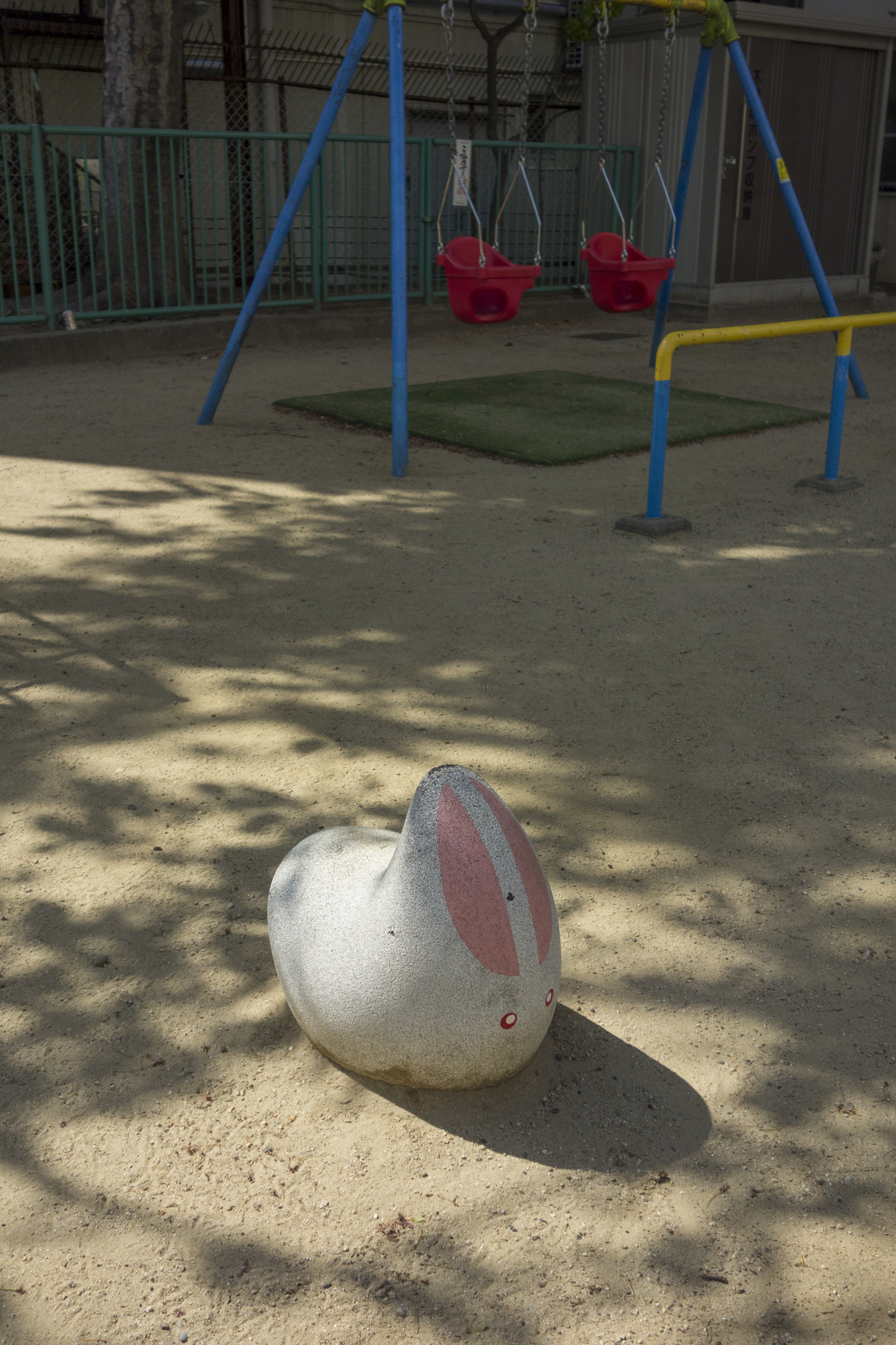 かわいくももの悲しい遊具のうさぎさん。そのもの悲しい佇まいがたまらない。