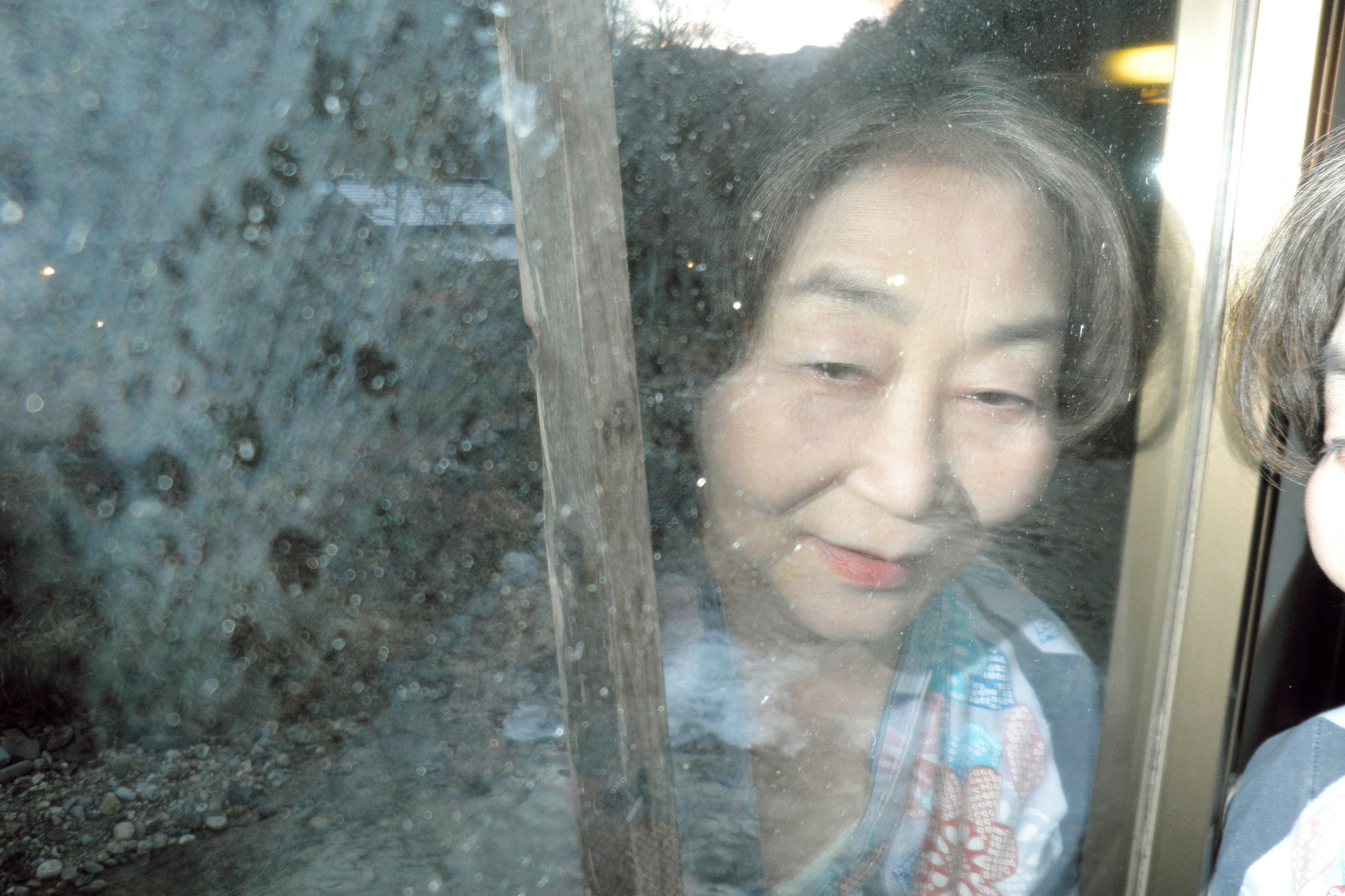 初冬群馬の温泉宿にて硝子に写る顔を思わず綺麗で撮ってしまいました
