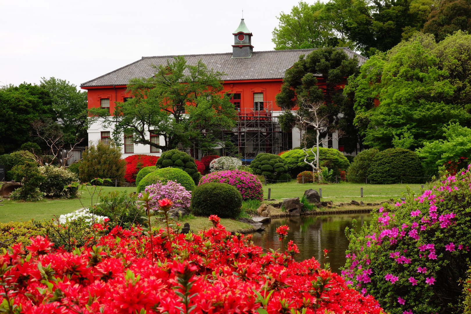小石川植物園の日本庭園前のつつじが見頃です
