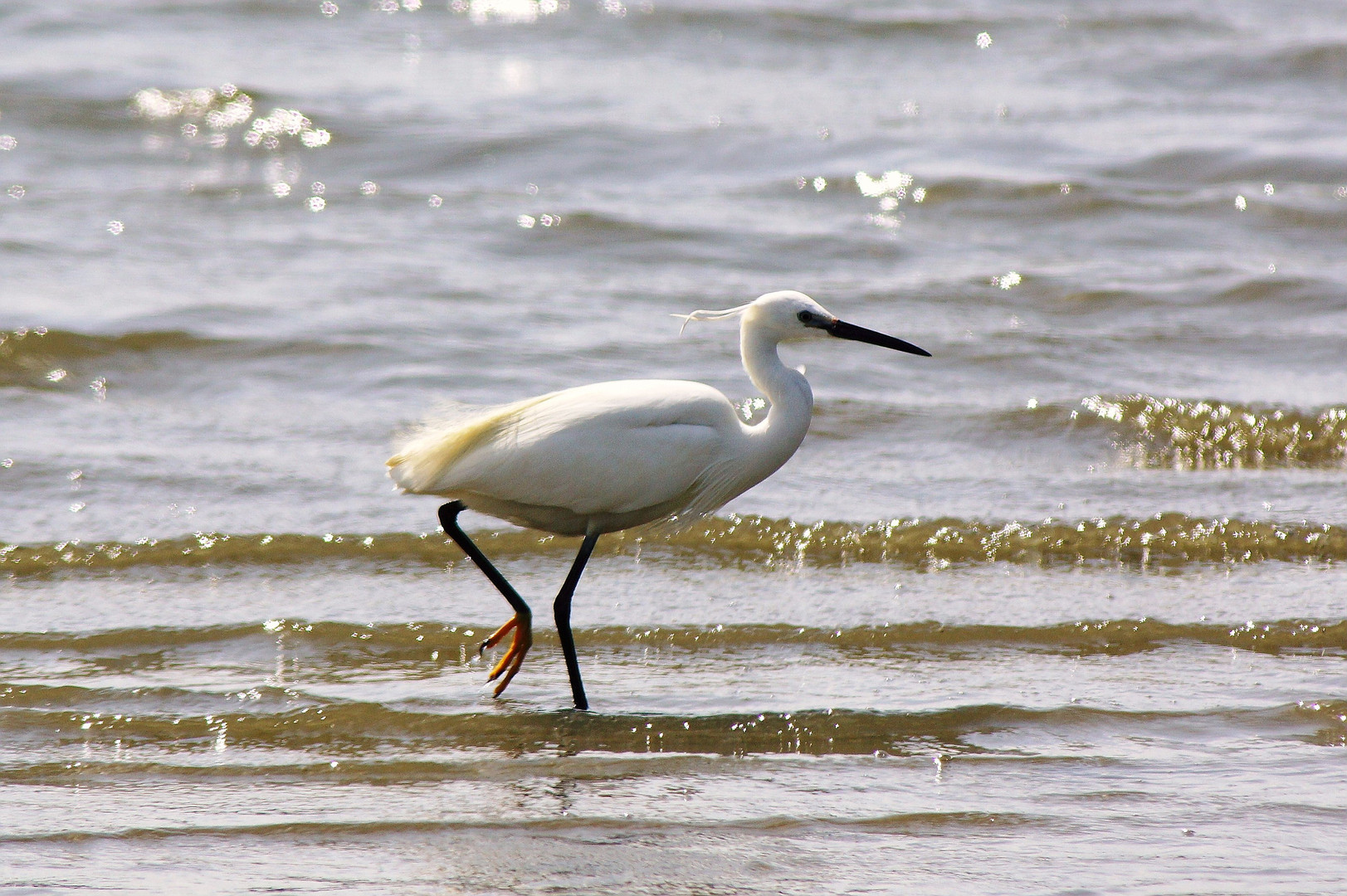暖かな午後、川に遊ぶ夏羽のコサギです。