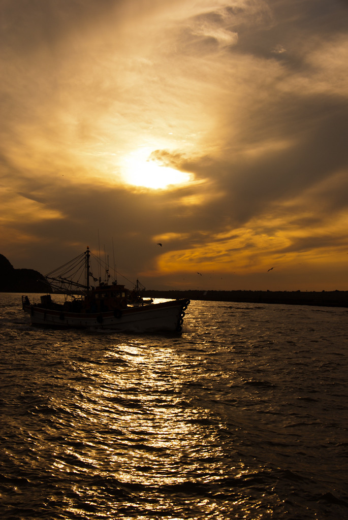 一日の漁を終えて。 何の漁か聞き忘れてしまいました・・・
