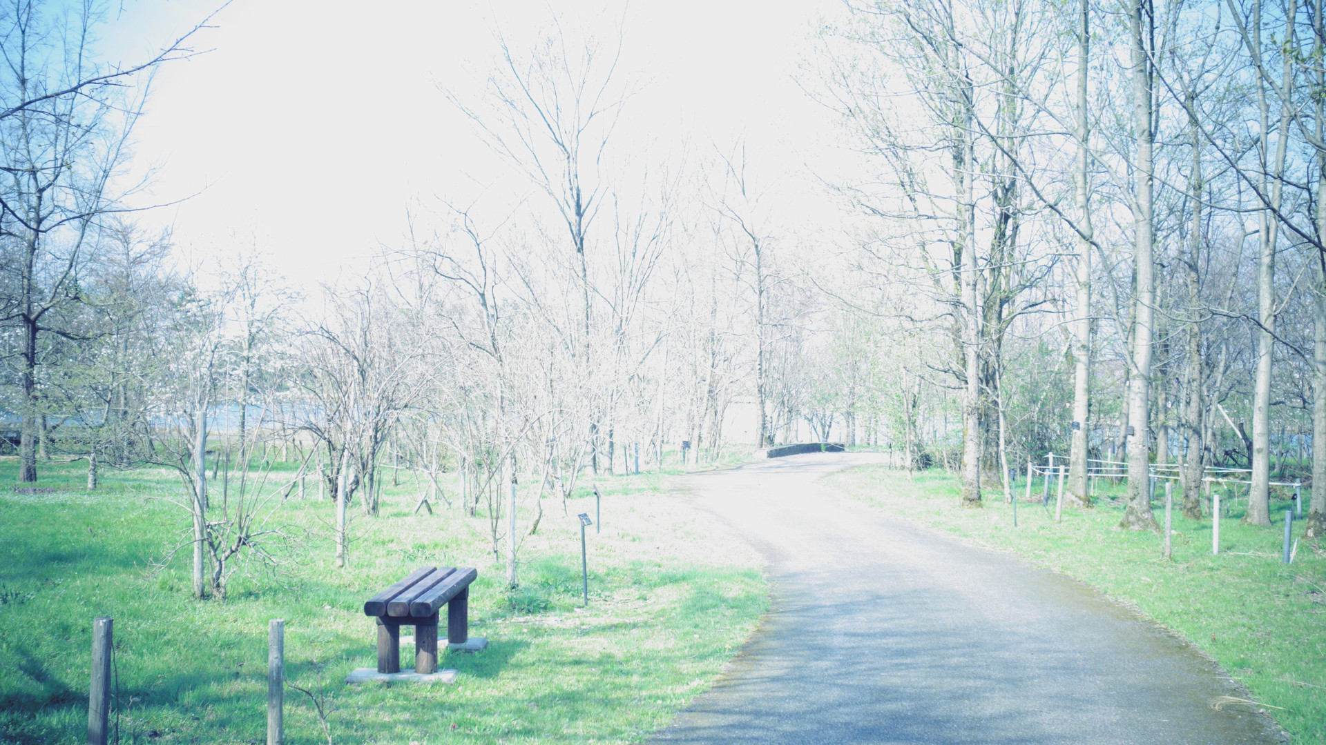 ふたりが春の小道を歩いてく