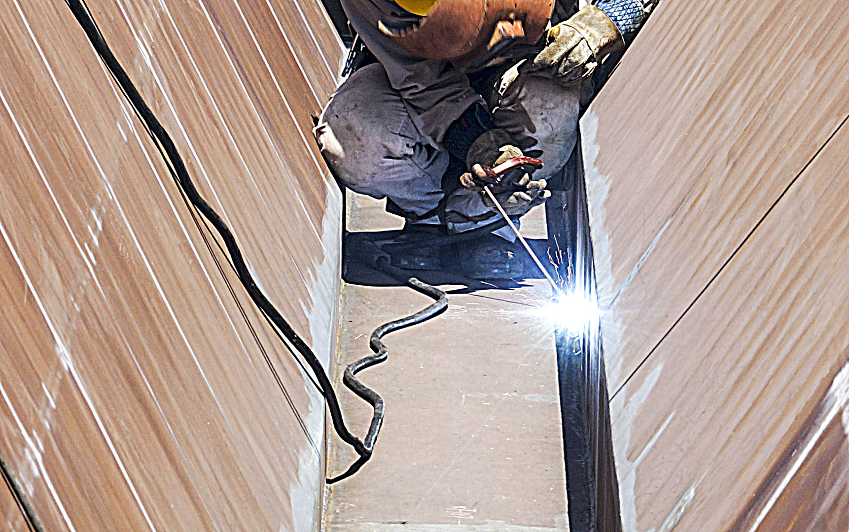 冬の寒い日も夏の暑い日も気の遠くなるような火花の数と研磨を繰り返し 大きな大きな鉄の舟は、その船体を海に浮かべる事が出来るのです。(cafeの窓から見える 福岡造船所 )