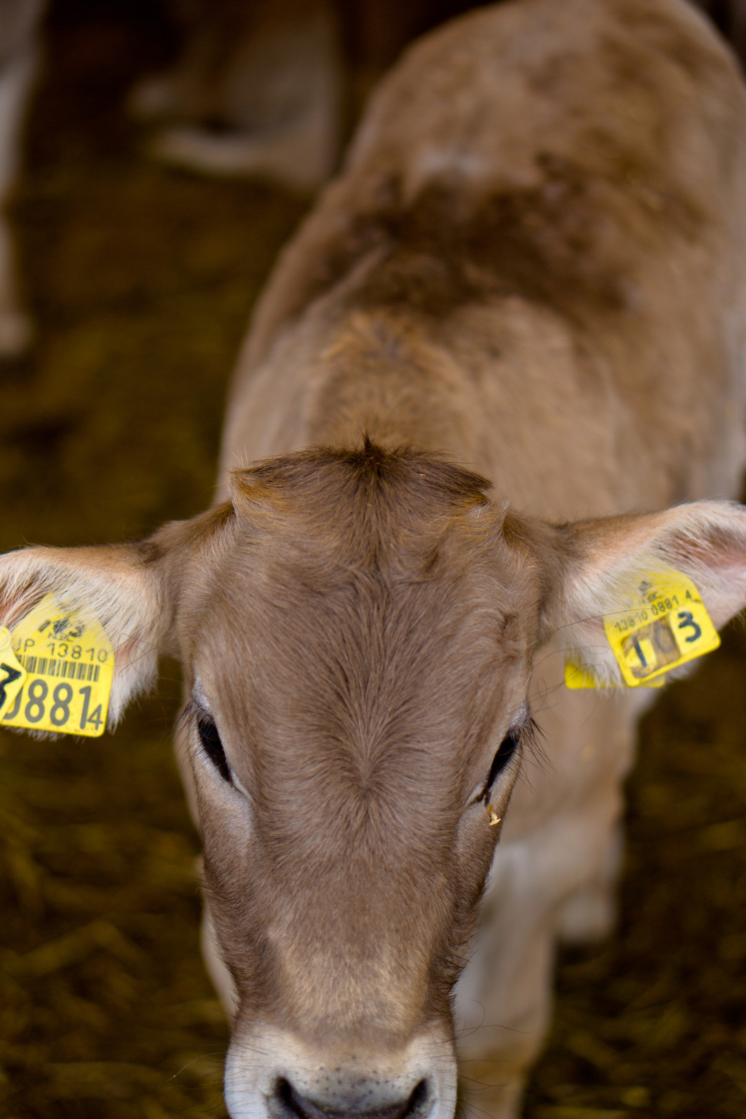 ブラウンスイスという牛です。 白っぽいです。 こいつは子牛ですが、後に山を駆け回り美味しいお乳を出してくれます。