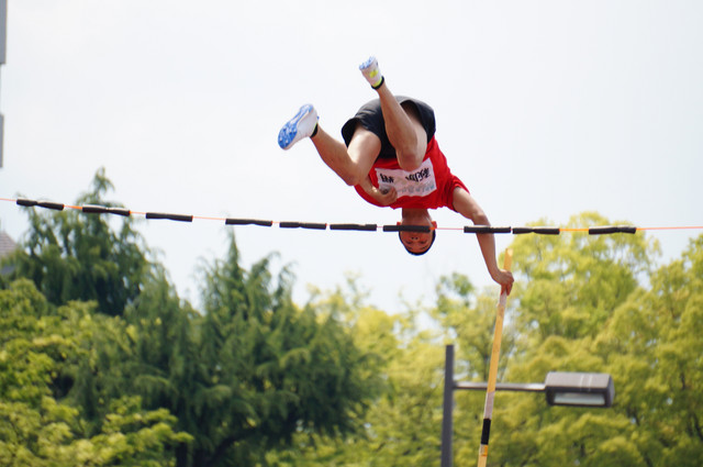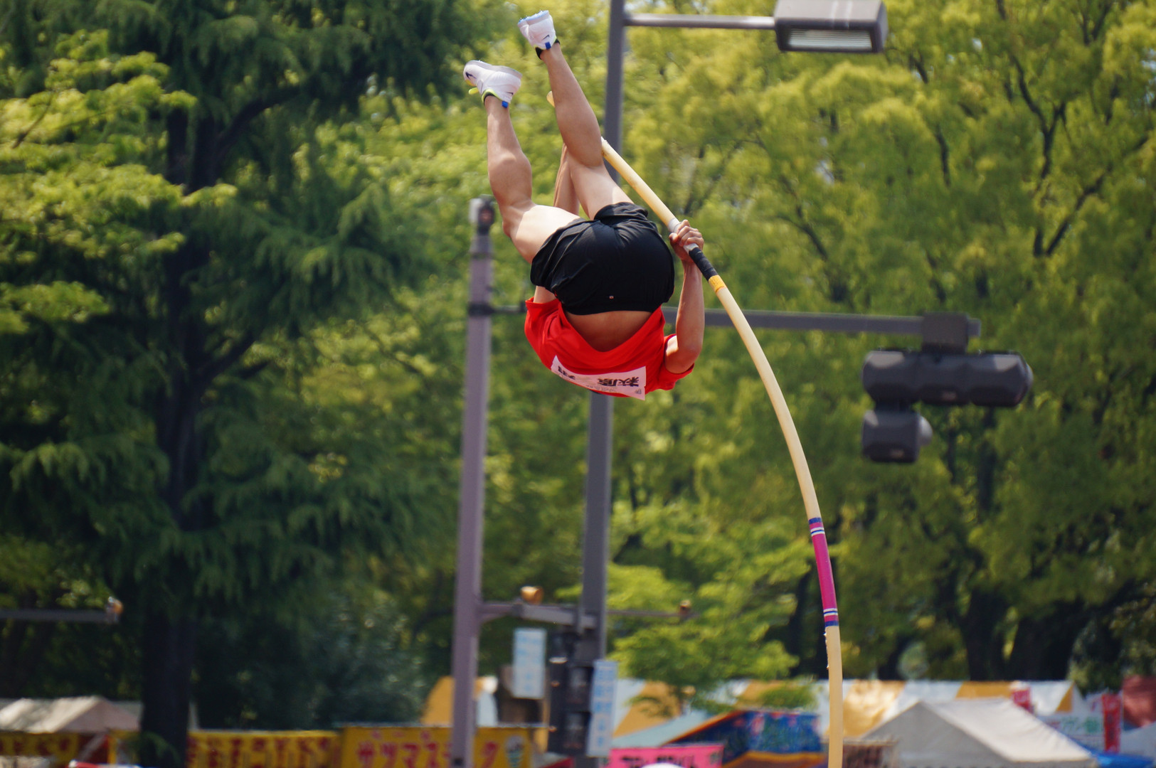平和大通りで棒高跳びのデモンストレーションがありました。間近で見ると迫力が違いました。