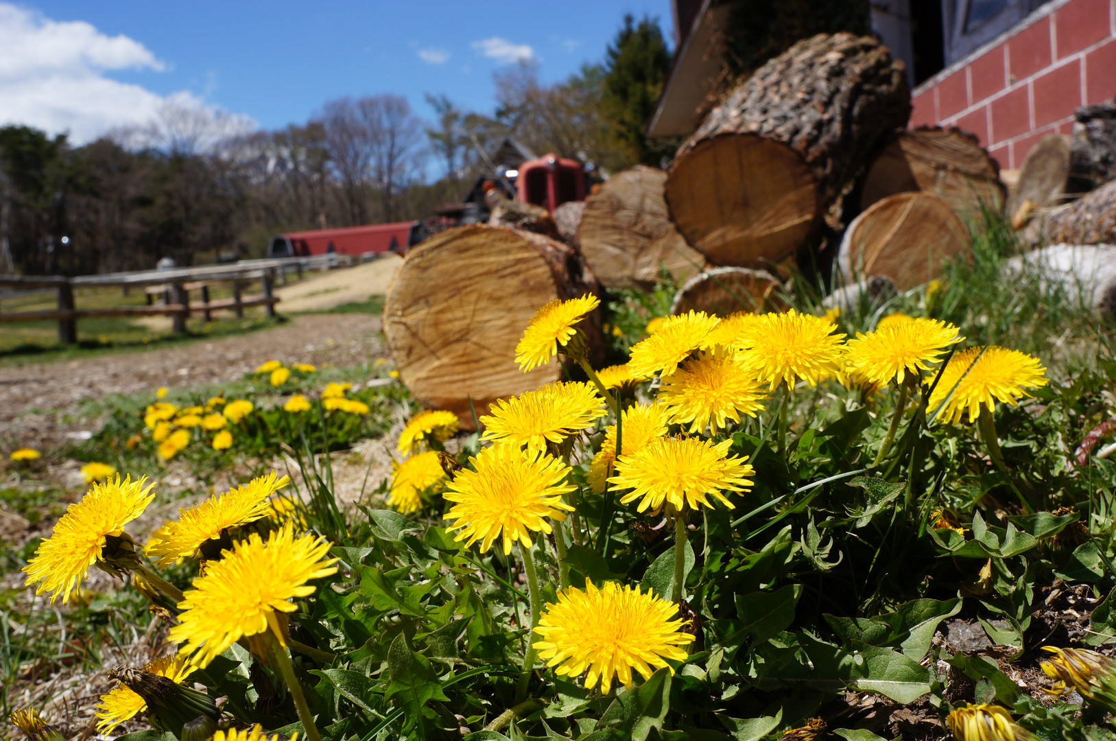 まだ寒い清里の牧場ですが、タンポポは元気に咲いていました。